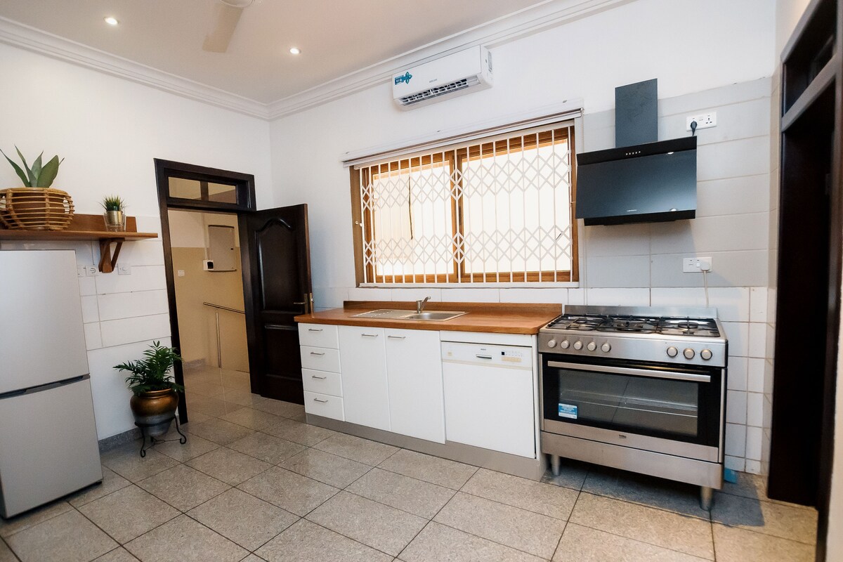 Welkom in een echt unieke tropische 🌴 Ghanese villa die jou, je familie, vrienden of collega's verwelkomt. De zorgvuldig in 2024 opnieuw ontworpen villa met 5 slaapkamers en 3,5 moderne badkamers biedt een verrijkende ervaring. Van modern Ghanees design tot aangepaste voorzieningen en ultieme privacy🏡. De villa is rustig gelegen tussen Oost en North Legon in de buurt van de Universiteit van Ghana🏫, waardoor het een geweldige uitvalsbasis is om de stad te verkennen. Boodschappen zijn ook beschikbaar in de buurt.