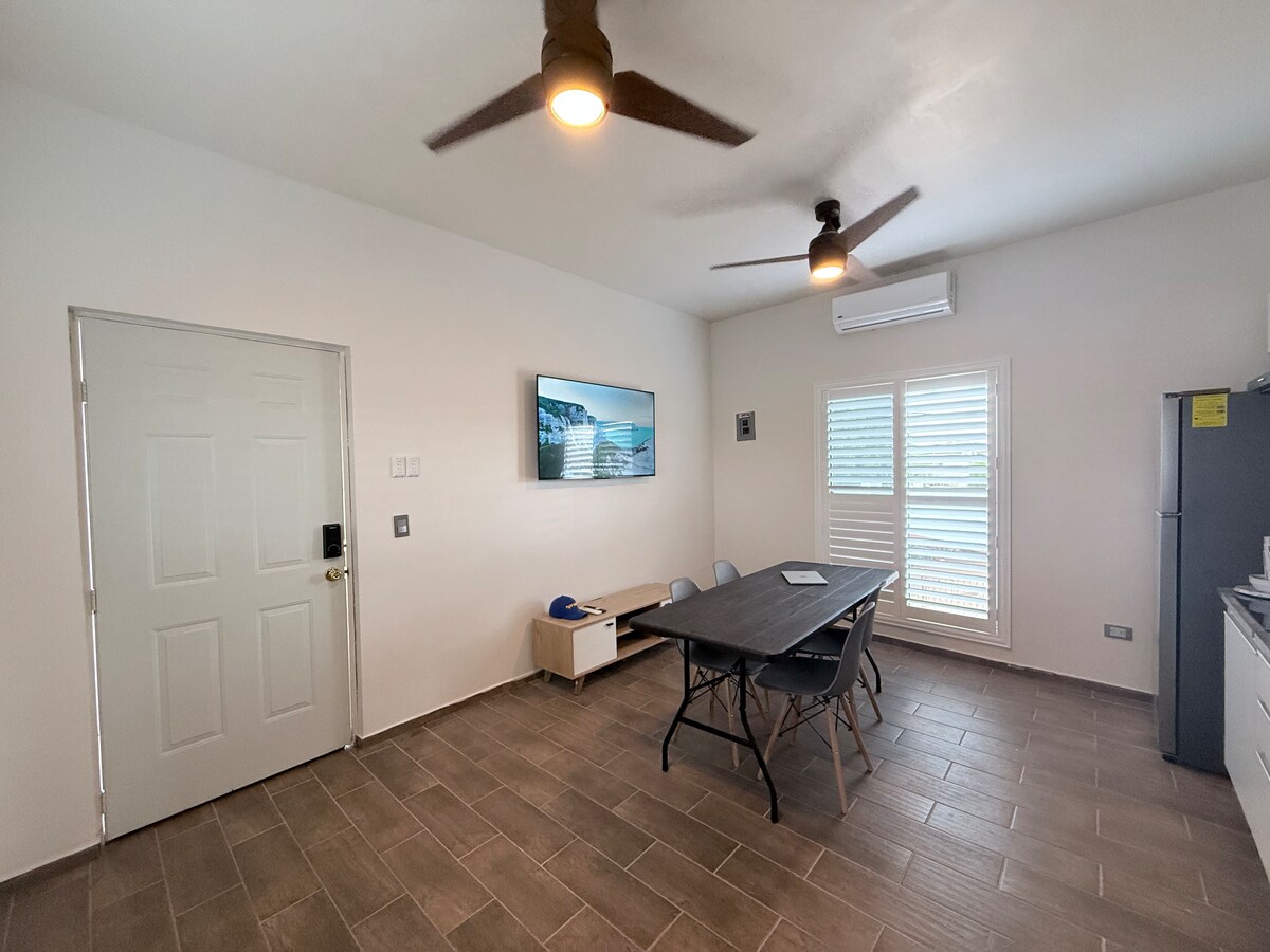 Modern en gezellig appartement op een paar minuten van de luchthaven✈️. Nieuwe, privé en bovenste verdieping🏡. Geniet van een volledig uitgeruste keuken, snelle wifi, airconditioning, ventilatoren, een smart-tv en een comfortabele slaapkamer met een tweepersoonsbed. Onberispelijke badkamer met een regendouche🚿. Ingang met code 🔐 in een rustige omgeving. Ideaal voor veeleisende reizigers en zakelijke reizigers💼. Ideaal voor kleine vergaderingen 💼