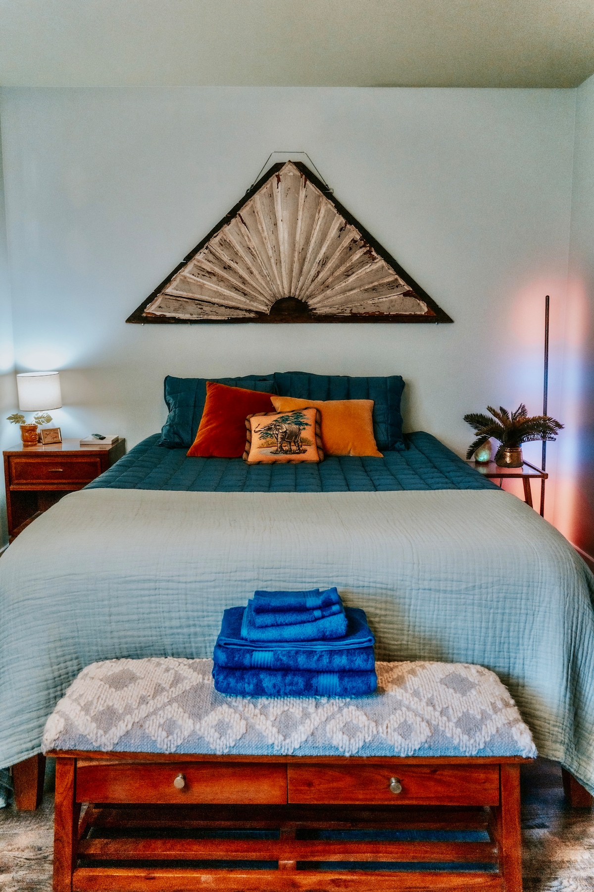 Wie heeft er niet gedroomd van glittervloeren in zijn huis? Nou, mijn man voor één- maar ik overtuigde hem om me 400 sq ft te geven om te zetten in een eigenzinnige, kleurrijke, boho paradijs. Je hebt je eigen ingang/parkeerplaats en hoeft je geen zorgen te maken over het delen van ruimte met ons. Je hebt een nieuw queensize helixbed en als je vrienden hebt meegebracht, kunnen ze de queensize slaapbank hebben. Een kitchenette met retro koelkast, magnetron en basisgerei zou voldoende moeten zijn om je lekkere Nashville restjes op te warmen of mee uit te nemen!