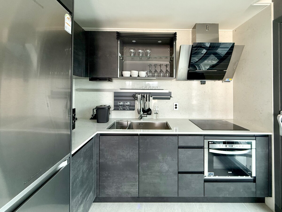 Over het■ aantal gasten * Standaard 4 personen: 2 queensize bedden * Bij het boeken voor 5-8 personen: extra bed of vloerbedekking en beddengoed aanwezig * Baby's jonger dan 24 maanden: niet inbegrepen in het aantal gasten (beddengoed niet inbegrepen) Wat TE verwachten binnen DE ■ unit "De kwaliteit van een gezinsuitje, de ruimte maakt het verschil" À bientôt Haeundae, een waarde van perfecte ontspanning die verder gaat dan een eenvoudig verblijf ✨ Waarom Avianto? ✔ Perfecte ruimtesamenstelling Twee badkamers zonder te wachten op een groot aantal mensen, en een ruime en aangename ruimte (2 slaapkamers + 2 badkamers + 2 kleedkamers + keuken) 30 pyeong (98m2) ✔ Overweldigend gevoel van openheid Een hoogwaardig ruimtegevoel met een hoge vloerhoogte van 2,8 m ✔ Parkeergelegenheid Handige en ontspannende parkeerplaats die zeldzaam is in Haeundae ✔ Premium slaap Alle slaapkamers hebben een Simmons-matras en hotelbeddengoed ✔ Aansprakelijkheidsbeheer Kärcher Vacuum & Steam Fase 2 Precision Care van toegewijd personeel voor slechts één team per dag Ontspan samen, geniet bij Avianto Haeundae. Tot ziens. Avianto.