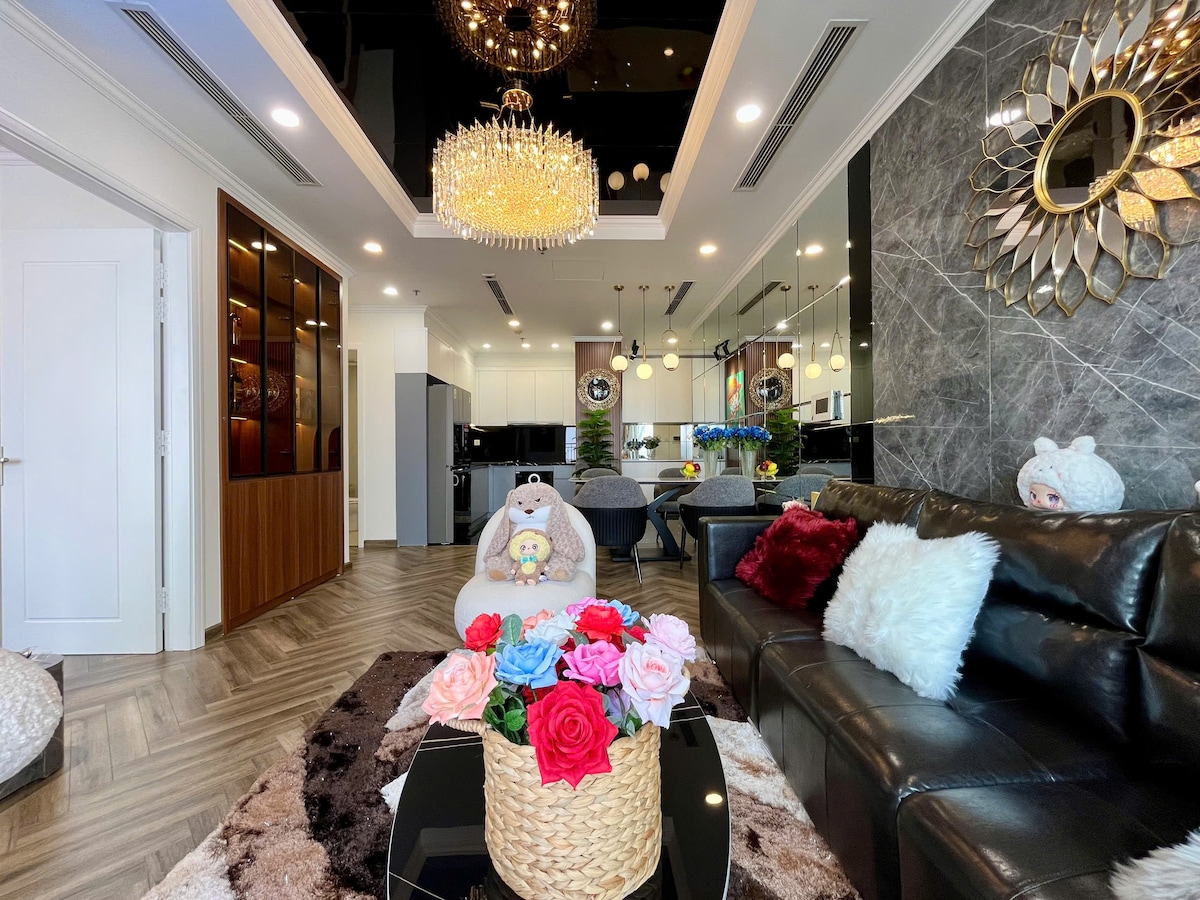 Chào mừng bạn đến với căn hộ 3 phòng ngủ sang trọng tại Park Hill Times City. Diện tích: 120m² Số phòng: 3 phòng ngủ, 2 phòng tắm, 1 phòng khách, 1 bếp. Phòng ngủ: Mỗi phòng đều có giường đôi hoặc giường đơn êm ái, chăn, gối cao cấp, tủ quần áo và bàn làm việc. Phòng khách: Không gian rộng rãi với bộ sofa hiện đại, TV, WiFi Bếp: Bếp đầy đủ tiện nghi với tủ lạnh, lò vi sóng, bếp điện, ấm đun nước và đầy đủ dụng cụ nấu ăn. Phòng tắm: Có 2 phòng tắm với vòi sen, nước nóng và máy sấy tóc.