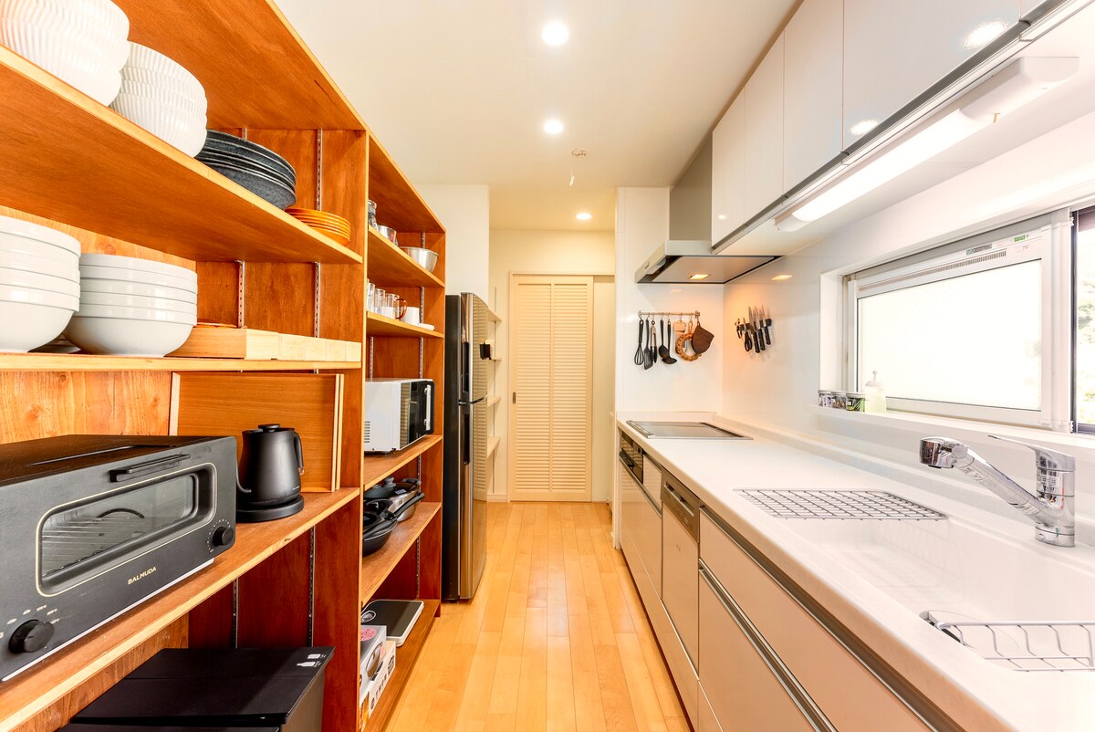 Op 12 minuten lopen van Hakone-Yumoto Station, dit 113㎡ gebouw met twee verdiepingen gebouwd in 2023 heeft twee slaapkamers en een 30㎡ LDK, en is geschikt voor maximaal 8 personen. De kleine eetkamer is verbonden met het BBQ terras met uitzicht over de Hakone bergketen. De woonkamer is gemeubileerd met comfortabele kralen kussens, een Marshall-geluidssysteem en een high-definition tv voor een ontspannen tijd. Na het genieten van sightseeing in Hakone, kom je genieten van de buitengewone ruimte bij "Hako-Reiro".