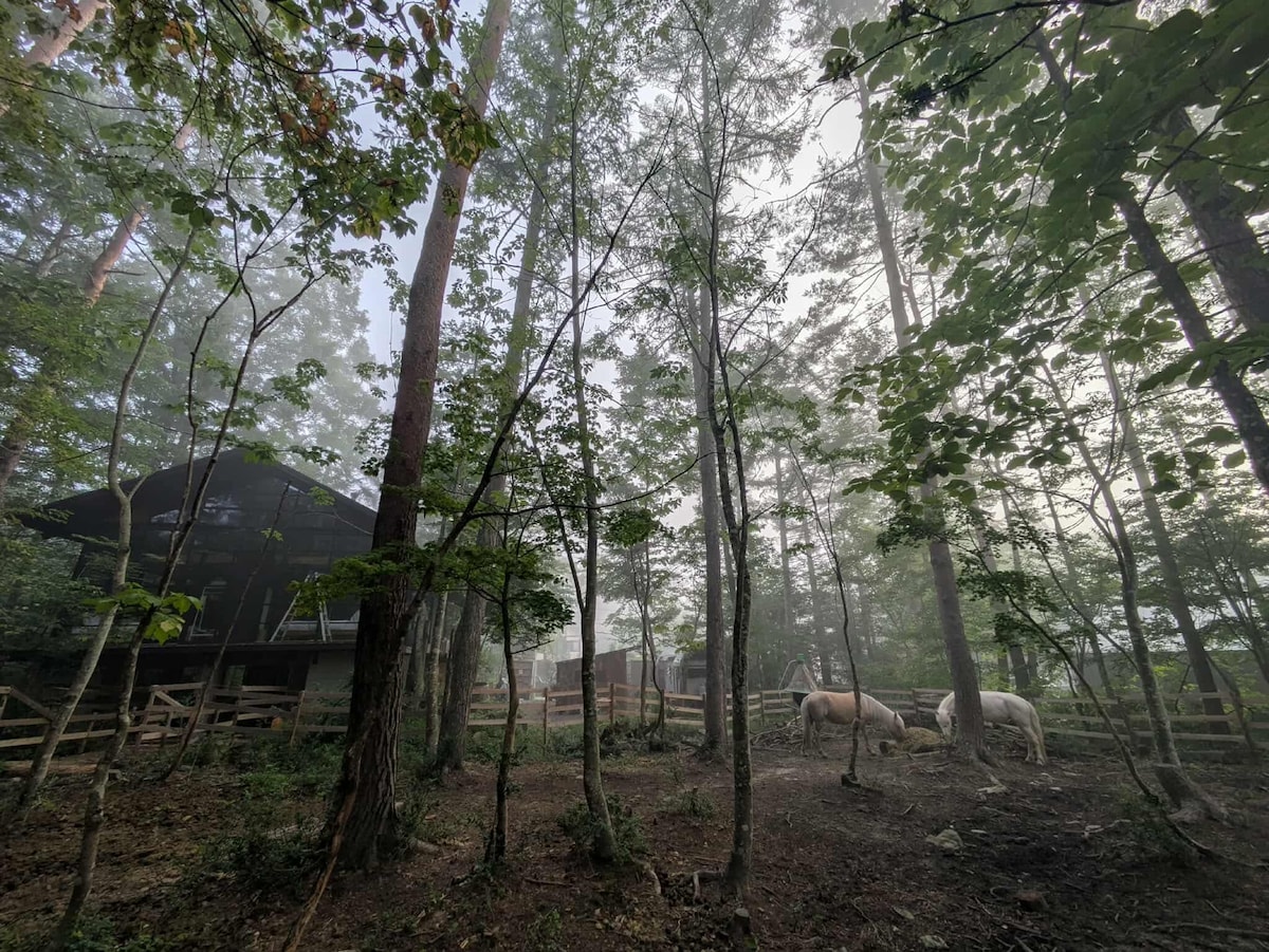 Ontsnap aan de drukte van de stad en geniet van een moment van natuur en rust. Geniet van een luxe tijd met je familie en dierbaren in een privévilla waar de warmte van hout zich zachtjes verspreidt. De woonkamer is voorzien van een volwaardige houtkachel. Terwijl je naar de zachte vlammen staart, kun je een gesprek voeren, een boek lezen of genieten van een glas wijn. De badkamer heeft een ligbad met de geur van cipres en een luxe warmwaterbronbad.Het ontspant zowel je lichaam als je geest. Vers groen in de lente, koele briesjes in de zomer, herfstbladeren in de herfst en een houtkachel en besneeuwd landschap in de winter. Ervaar buitengewone genezing terwijl je omringd bent door de natuur van Azumino, waar je de vier seizoenen kunt voelen.