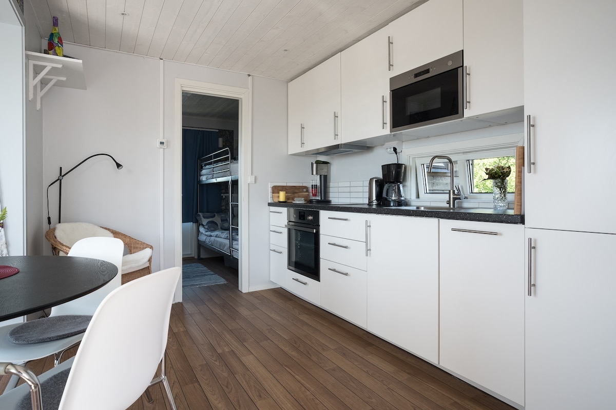 Het interieur van het appartement is zorgvuldig uitgekozen om je een unieke vakantie-ervaring te geven. In de 25 m2 vind je alles wat je maar kunt wensen. Een heerlijke loungesofa van Sweef die gemakkelijk transformeert in een heerlijk comfortabel groot bed. Smart-tv zodat je je eigen Netflix-account kunt gebruiken. Volledig uitgeruste keuken met stoomoven, vaatwasser, koelkast en alle keukenapparatuur die je nodig hebt. In de volledig betegelde badkamer staat een wasmachine. Jacuzzi (badkosten 200 SEK/dag).