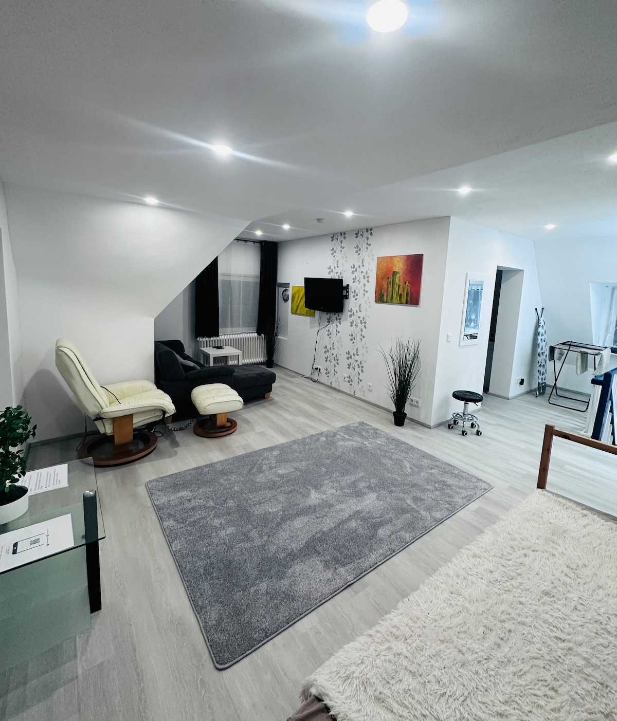 Het herenhuis is gelegen in de rustige en groene gemeente Bönningstedt en grenst aan Hamburg. Een kamer is 10 m² (1e verdieping). Bed (1,40 x 2,00 meter) + eenpersoonsbed (0,80 x 1,90 meter). De tweede kamer is op zolder met iets minder dan 30 m². Er is een queensize bed (1,80 x 2,00 meter) + eenpersoonsbed (0,90 x 2,00 meter). Toegang via een opvouwbare trap. In de kelder is een pingpongtafel en halters