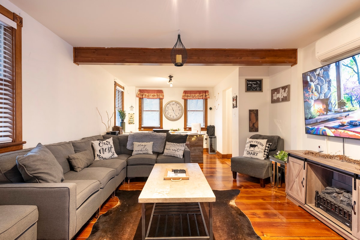 ✨HET GAAT ALLEMAAL OM HET VINDEN VAN DE RUST IN DE CHAOS ✨ en herinneringen maken... 🌿4 ACRES PRIVACY, RUST EN WILDE WESTELIJKE CHARME 🌿4 GEZELLIGE SLAAPKAMERS • 3000+ SQ FT PUUR PLEZIER 🏡Unieke op maat ontworpen retraite in het hart van de Poconos - Prachtige natuur en dieren in het wild, maar op enkele minuten van alle belangrijke bezienswaardigheden van de Poconos 💖Perfect voor elke groepsgrootte - van romantische uitjes tot familiereünies, speciale gelegenheden of ontspannen met vrienden en geliefden ⭐Meer dan 100 leuke binnen- en buitenactiviteiten voor alle leeftijden ⭐