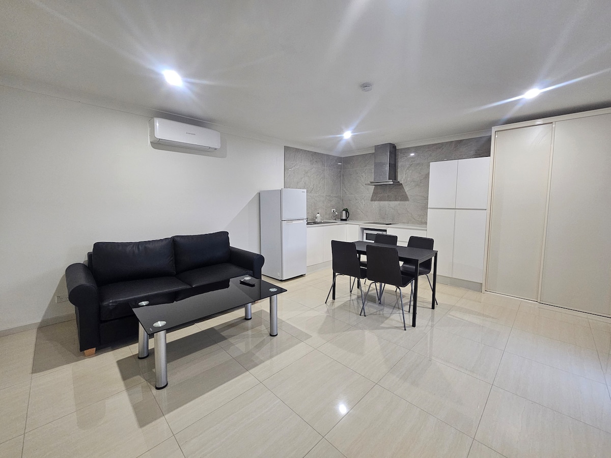 Gelegen in een rustige maar handige buurt, kun je gemakkelijk reizen naar Chipping Norton Village Plaza, Moorebank Shopping Village, Westfield Liverpool en Cabramatta Central. De accommodatie omvat: - 1 slaapkamer met een queensize bed en ingebouwde kledingkast - extra 2-persoonsbed - 1 privé badkamer met wasmachine - volledig uitgeruste keuken en een eethoek - ruime woonkamer met tv - Gratis onbeperkte wifi Strikt geen huisdieren EN geen feesten toegestaan