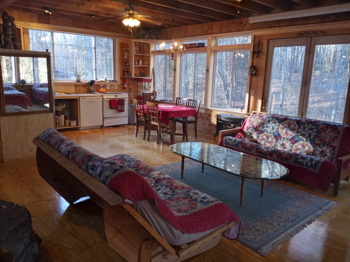 Eigen in-law suite bevestigd als een garage. Beste uitzicht in het huis met uitzicht op de vijver, eenden, geiten, paarden en mtn. 1 Slaapkamer, kleine douchecabad, combo-kit/lvg-kamer en afgeschermde veranda. Ca. 600 sq ft. ttl. De ruimte is perfect voor 2 personen, ok voor 4 en een squeeze voor 6 personen. Slechts enkele kilometers van The Big E, 6 Flags, MGM Casino, BB Hall of Fame & Dr. Suess. 20 minuten naar Hartford Int. Luchthaven, 30 ish naar Htfd & 40 ish noordwaarts naar 5 college gebied.