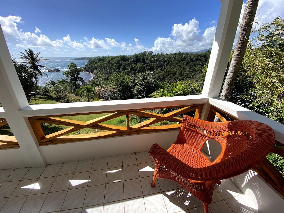 Je bent uitgenodigd om Dominica te verkennen, ook bekend als het Natuureiland van het Caribisch gebied! Het studio-appartement is gelegen op een prachtige locatie met uitzicht op de zee aan de noordoostkust van Dominica. Volledig uitgerust voor korte of langere termijn vakantie met keuken, binnen en buiten eetgelegenheden, en ensuite badkamer. De keuken is volledig uitgerust; handdoeken en beddengoed worden ook verstrekt. Uitstekend toevluchtsoord voor een koppel of alleenstaande reiziger. Het dorp Calibishie ligt op minder dan 1,5 km of 20 minuten lopen.