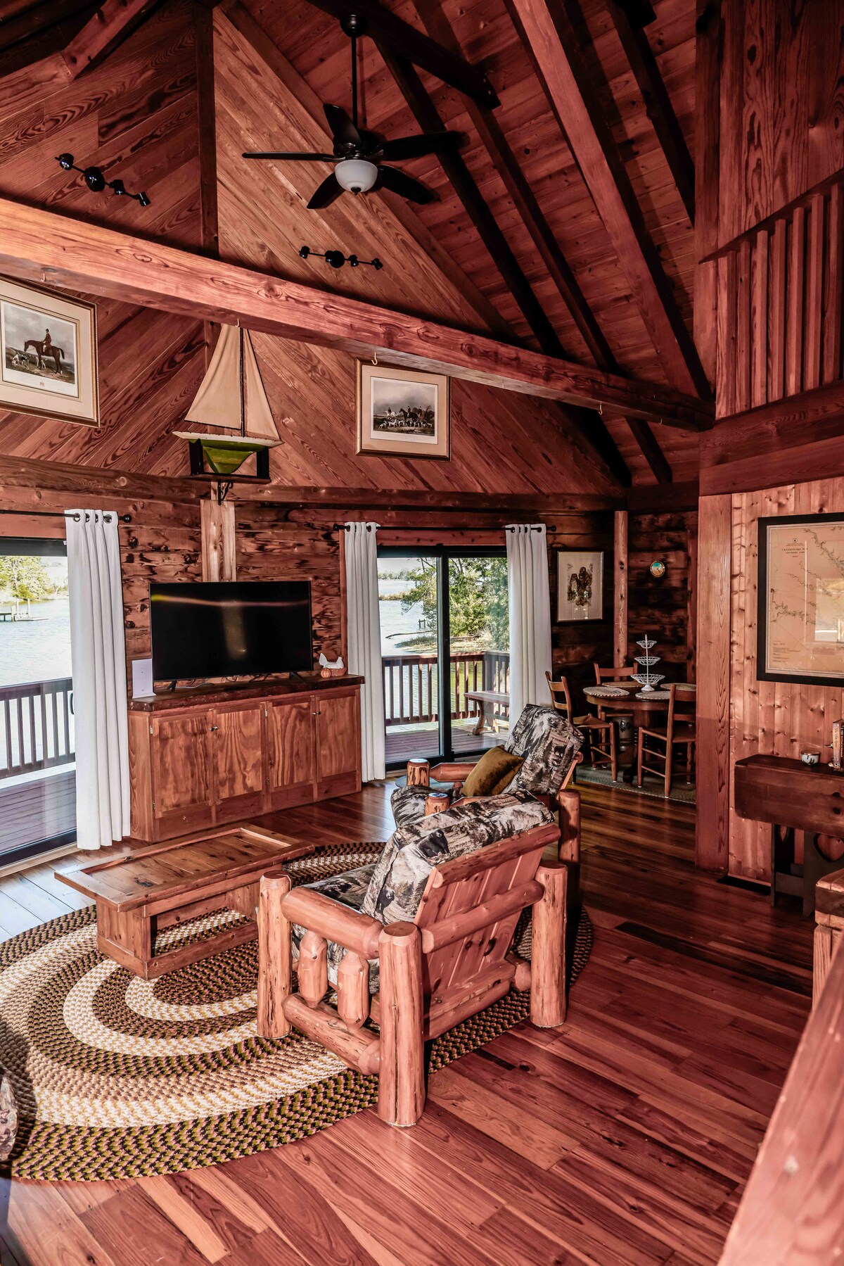 Sunset Retreat is a perfect place for family and friends to visit with plenty of indoor and outdoor spaces available for quiet time or group activities. We have, a playground area, cornhole boards, a firepit, kayak's, and a 2-person wide bottom canoe for your enjoyment. We have some life vests at the dock you're welcome to use too. * INTERNET - Country living, you can usually get on FB and such, but streaming, gaming, and watching movies may be hit and miss on the T Mobile internet provider.