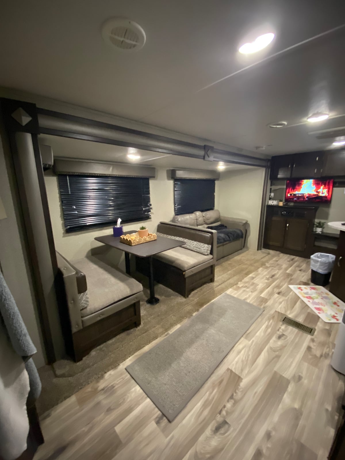 Welkom in een gloednieuw huis, gebouwd in 2022, genesteld aan het einde van een rustige doodlopende weg. Deze ruime woning met vier slaapkamers biedt in totaal 10 bedden, die comfortabel geschikt zijn voor je groep. Een open indeling verbindt de keuken, eethoek en de woonkamer, waardoor het gevoel van ruimte wordt verbeterd. De goed uitgeruste keuken beschikt over alle basisvoorzieningen die je nodig hebt. De woonkamer is gemeubileerd met een 65inch Roku-tv, aangevuld met een elektrische open haard in de tv-standaard.