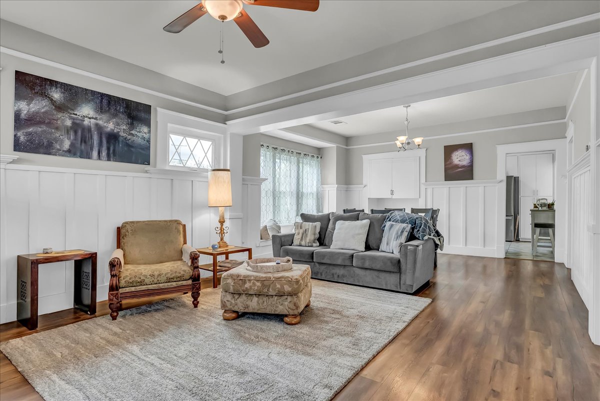 Het charmante huis in het centrum van Main Street, ideaal voor gezinnen, op slechts 45 minuten van de beroemde nationale parken! Nieuw geschilderd en ingericht met 3 luxe slaapkamers, bad met bad/douche, woonkamer, grote ingerichte keuken (nieuwe apparaten) eethoek en aparte wasruimte! Lange oprit voor parkeren en enorme gras achtertuin voor kinderen om te spelen! Loop de straat op om Visalia 's beste eetgelegenheden, koffiehuizen, theaters, Rawhide honkbalveld, Kaweah Delta Hospital, College of the Sequoias en meer te vinden!