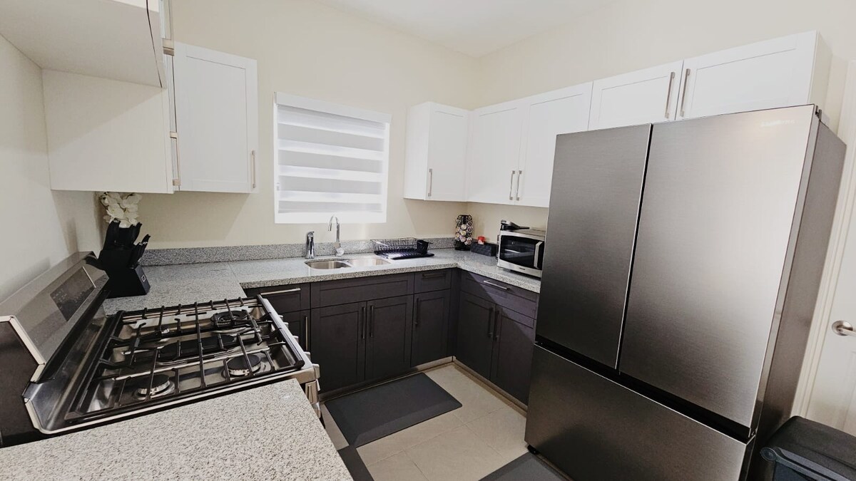 Ontspan met het hele gezin op deze rustige plek om te verblijven. Nieuw omheinde gemeenschap 24/7 beveiliging Deze 2 slaapkamers met 1 badkamer heeft alle nodige voorzieningen en is centraal gelegen om gemakkelijk toegang te krijgen tot restaurants, supermarkten,apotheken, stranden, ziekenhuis en lokale culturele bezienswaardigheden. Nieuw gebouwd huis en smaakvol ingericht, deze leefruimte is huiselijk met WIFI, smart-tv 's, Alexia, elektrische open haard, airconditioning, wasmachine en droger, kingsize en queensize bed, laptop.