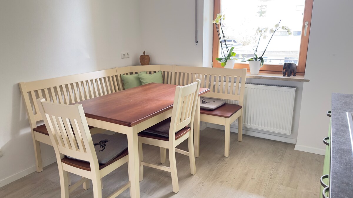 Die neu renovierte Wohnung liegt in einem ruhigen, idyllischen Teil Rosenheims. Bahnhof und Innenstadt sind ca. 2 km entfernt und gut zu Fuß erreichbar. In der Nähe befinden sich Supermärkte, Bäcker, sowie Haltestellen der öffentlichen Verkehrsmittel. Die Wohnung befindet sich im 1. OG und ist durch einen eigenen Hauseingang zugänglich. Die helle Wohnküche, das Bad mit Fußbodenheizung und großer Badewanne, sowie das Schlafzimmer mit Buchenholz-Doppelbett laden zum gemütlichen Verweilen ein.