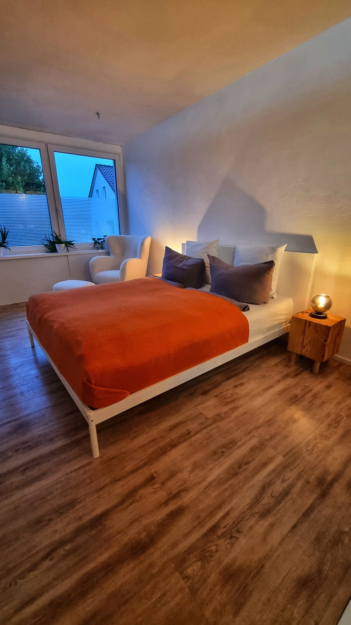 Willkommen in unserer großzügigen Wohnung im Grünen mit Balkon. Der offene, moderne Grundriss schafft ein luftiges und helles Ambiente. Große Fenster lassen viel Tageslicht herein und bieten Ihnen gleichzeitig den Blick ins Grüne. Die hochwertige und individuelle Einrichtung macht es zu einem einladenden Zuhause und idealen Rückzugsort. Dennoch sind Einkaufsmöglichkeiten und Ausflugsziele in der Nähe mit dem Rad oder Auto sehr gut erreichbar.