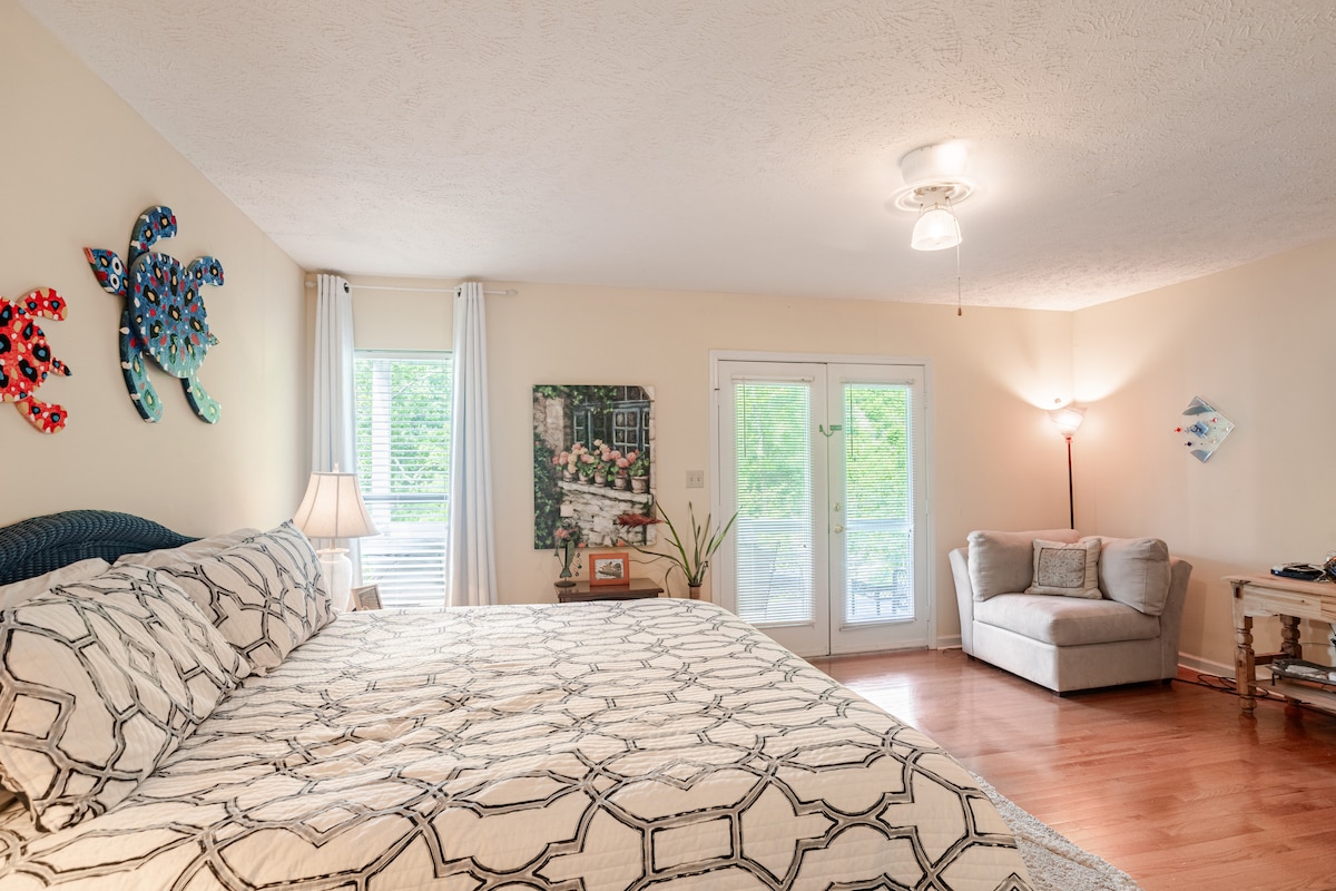 Deze stijlvolle suite is splinternieuw vanaf mei 2024! Prachtig ingericht en handig voor alles wat Savannah te bieden heeft! De woonkamer/keuken heeft een prachtige stenen open haard, twee eenpersoonsstoelen/bed voor extra gasten. De op maat gemaakte keukenkastjes zijn volledig gevuld voor al je behoeften. De mastersuite biedt een nieuwe kingsize slaapkamer en een nieuw zacht traagschuimmatras, lakens en kussens. De badkamer biedt ook een ruime tegeldouche en nieuw beddengoed. Welkom!