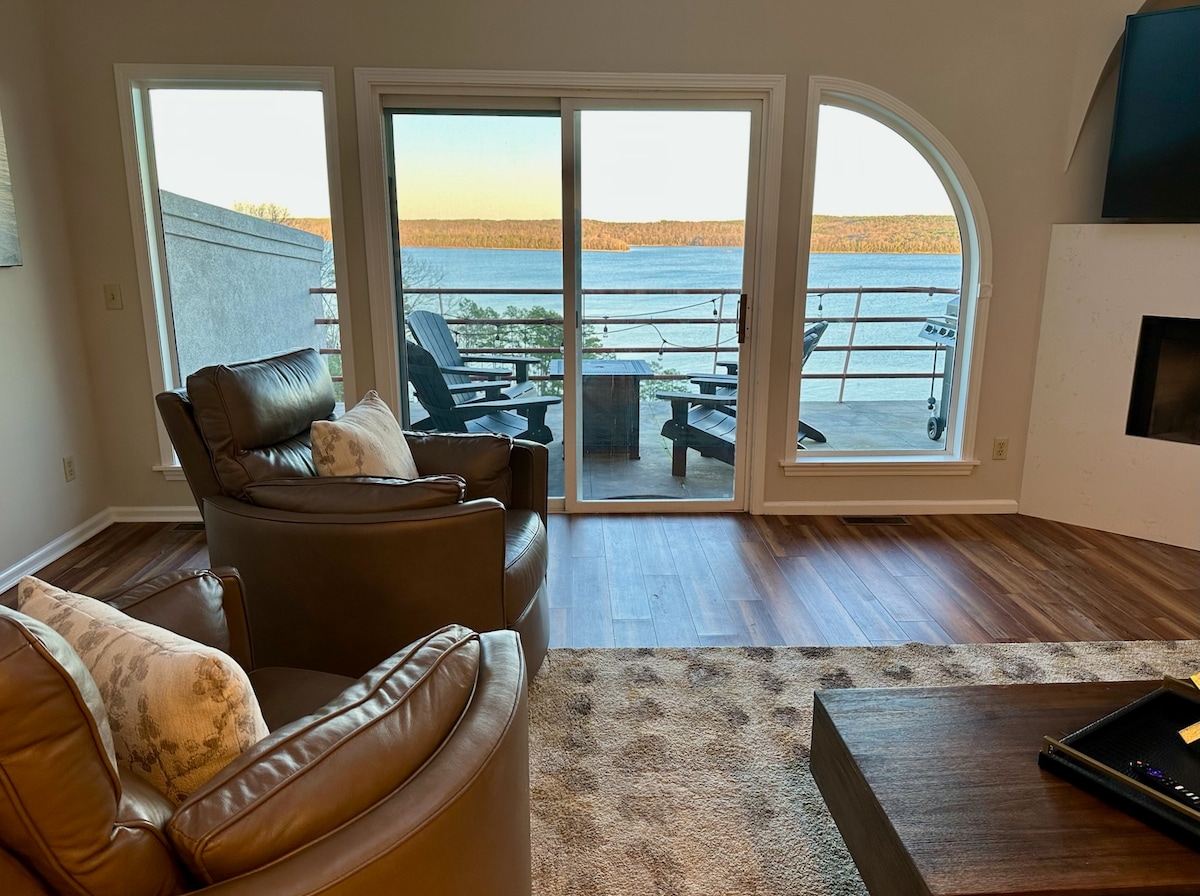 Luxurious 3 bedroom Estate w/ private bath for ea. room located 5 mins from Aqua & the State Park. The fully equipped kitchen w/ wrap-around bar seating, cozy living rm w/ fireplace, and master loft suite w/ whirlpool tub were designed w/ luxury & comfort in mind. Unwind by the fire pit, while enjoying breathtaking panoramic Lake views from the spacious deck. Pull your boat into the boat slip & get on the water w/ease. Relax or grill by the pool. Designed to make every stay unforgettable.
