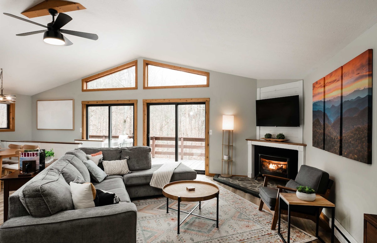 "Dit is een prachtig huis en het perfecte rustige weekendje weg." - Gasten Met een bubbelbad, kingsize bedden, gratis brandhout, volledig uitgeruste keuken en 75-inch tv voor filmavond is dit de afgelegen bergoase waar je van droomt voor dat broodnodige uitje! Als je niet roostert boven het vuur of in de hot tub, maak dan een reis naar de stad en ervaar lokale parels zoals een bruisende boerenmarkt, smakelijke eetgelegenheden, charmante winkels en een schat aan buitenactiviteiten!