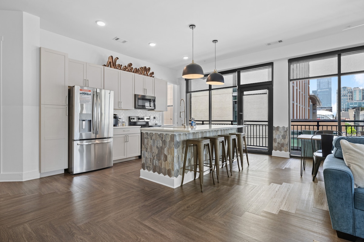 ⭐ Favoriet van gasten | Superhost ⭐ Downtown Nashville Airbnb op een steenworp afstand van Broadway honky tonks en Bridgestone Arena. Verblijf in het hart van Music City — geen auto nodig. Dit appartement in het centrum van Nashville beschikt over een patio naar de binnenplaats, wifi, smart-tv en een complete keuken - perfect om te ontspannen na Broadway. ✔ Favoriet van gasten ✔ Superhost ✔ Zeer goed beoordeeld verblijf * Mocht u met meer dan vier gasten komen, neem dan contact met ons op voor informatie over de slaaparrangementen als u vragen hebt. *