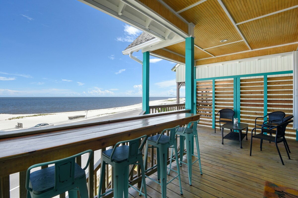 One of the most unique homes located on the Mississippi Gulf Coast! Imagine drinking your morning coffee or an evening glass of wine on this spacious front porch while over looking the breathtaking gulf! This charming beach front cottage is the perfect place to relax while being near great restaurants, bars, nightlife and of course the beach! This home has two bedrooms and is recommended for four but can accommodate up to six.