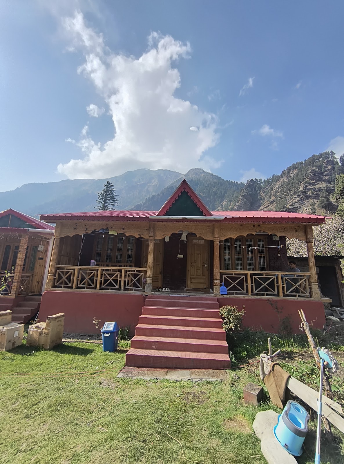 Niet alleen een homestay, het is een erfgoed van 500 jaar oud verblijf genesteld in de schoot van de natuur. Gelegen in raithal village, op slechts 10 km van de Bhatwari-markt. Ver weg van vervuiling, lawaai en chaos, is het geworteld in een enorm eikenbos en fruitboomgaard. We hebben Peach, Plum, Apricot en Apple tree om fruitliefhebbers te behagen. We hebben een 1 kamer op de begane grond, met een gemeenschappelijke badkamer, een enorm balkon met uitzicht op de vallei. We hebben 2 tenten in de boomgaard geplaatst voor avonturiers.
