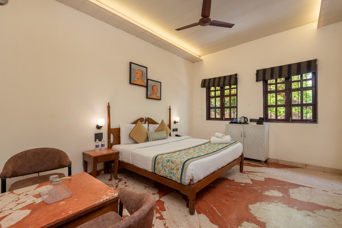 Afgelegen Nahan - Bantony Cottage (een koninklijke lodge) Stap in tijdloze elegantie in The Maharaja Suite, een koninklijk toevluchtsoord in de rustige heuvels van Nahan. Deze suite is ontworpen om je de charme van een vervlogen tijdperk te bieden met alle gemakken van het moderne leven en is perfect voor koppels, soloreizigers of iedereen die op zoek is naar een luxe ontsnapping midden in de natuur.