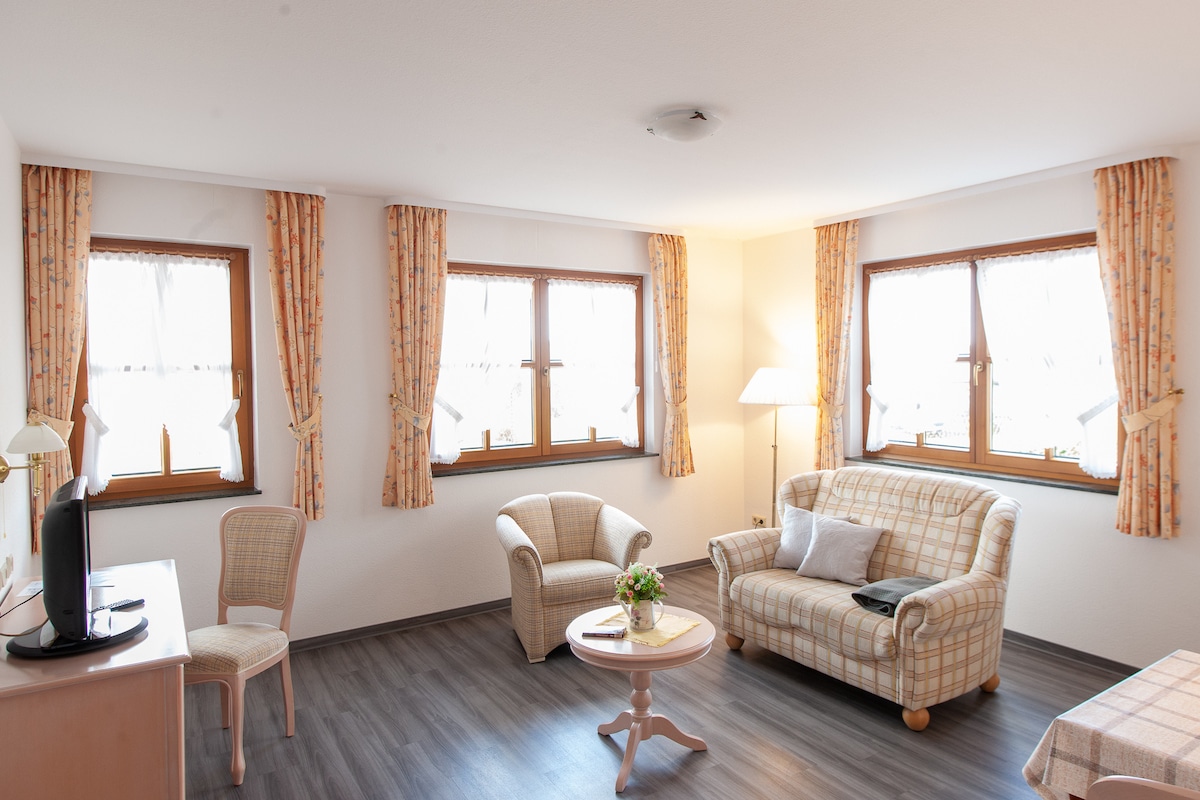 In ons onlangs gerenoveerde vakantiehuis " Landhausferienwohnungen"Am Brockenblick" zijn verschillende appartementen voor twee, drie of vier personen elk. Een appartement is ontworpen om toegankelijk te zijn. In alle appartementen kunt u gratis gebruik maken van snelle wifi. Onze ruime wellnessfaciliteit met Finse sauna, stoomcabine en voetverwarmingsbad kan 's middags zonder extra kosten worden gebruikt en in de fitnessruimte kunt u vrij naar eigen wens actief zijn.