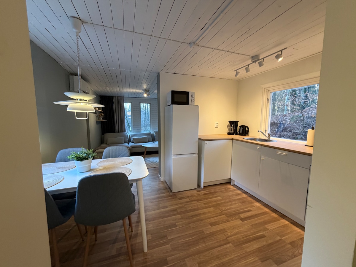 Gezellig huisje net buiten Höör waar je volledige toegang hebt tot de hele ruimte en waar er onder andere een fornuis, buitenhaard, groot houten terras en een ruime tuin met een bos er net achter is. De accommodatie ligt in een klein hutten-dorp in de buurt van het Quvesarum-meer. Rond de hutten ben je omgeven door het bos en met een wandeling van 10 minuten door het bos kun je naar een meer met een barbecue en zwemgedeelte. OPMERKING: de hottub is buiten gebruik. Dit is geen plek om een feest te geven of buiten muziek te spelen, want het ligt in een woonwijk.