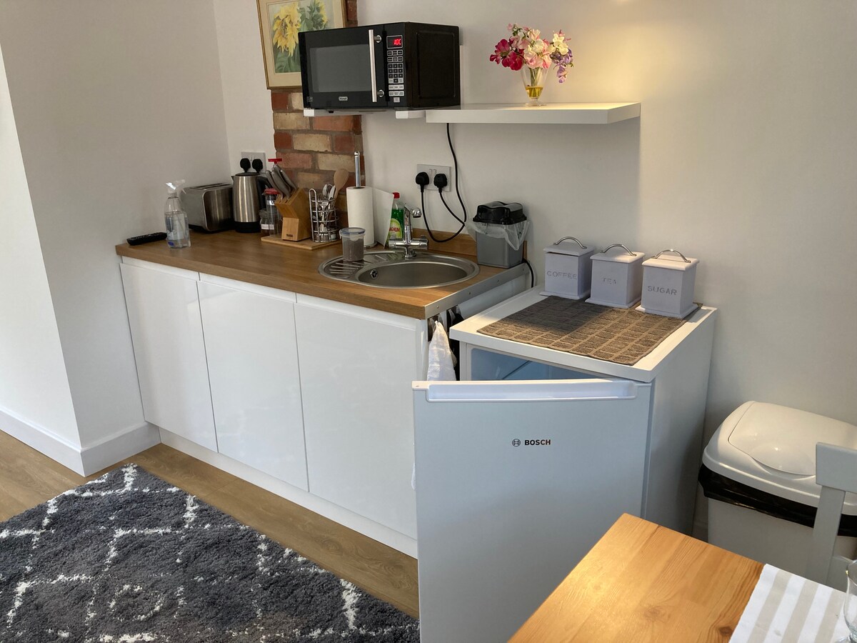Deze prachtige tuinstudio met eigen ingang en openslaande deuren naar het terras, ligt in de tuin van een 100 jaar oud grachtengordel. Ensuite douche, keuken met een wastafel, koelkast/vriezer, magnetron, waterkoker en broodrooster. (opmerking, geen KOOKPLAAT). Er is een smart-tv, WIFI, een comfortabele bank, eettafel en stoelen en een groot kingsize bed. Prachtig uitzicht op de tuin en de velden daarachter. Perfect voor een kort verblijf in Warwickshire voor zaken of plezier. GRATIS PARKEREN en GEWELDIGE LOCATIE. Profielfoto pls!