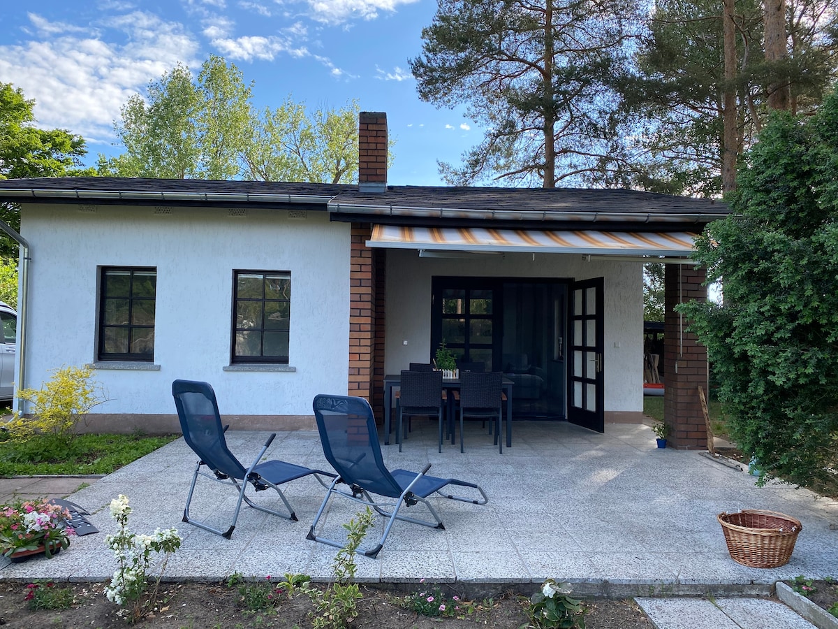 Wij bieden ons kleine appartement in bungalowstijl op ons terrein in het rustige Börnicke aan de rand van Berlijn te huur. Het is een appartement met 1,5 kamer met een badkamer en een uitgeruste keuken. Onze bungalow nodigt je uit voor absolute ontspanning vanwege de ligging aan de rand van het bos en het groene veldenmeer op loopafstand. Maar ook Berlijn is per trein in ongeveer 15 minuten te bereiken.