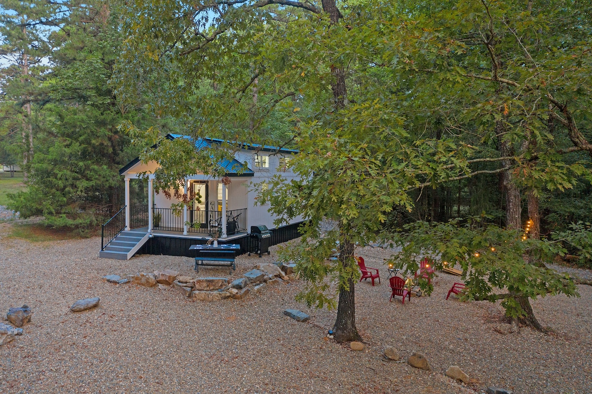 Tiny house ligt op slechts 20 minuten ten zuiden van Broken Bow Lake, Hochatown en Beavers Bend State Park. Rustige gemeenschap, geen onverharde weg, goede parkeergelegenheid. Geschikt voor vier gasten, met een queensize bed in de slaapkamer en een queensize luchtbed beschikbaar voor gebruik op de vloer. Grote tv met Roku, wifi aanwezig. Koelkast, servies, magnetron, koffiepot en inductiekookplaat met kookgerei voor licht koken. Houtskool grill buiten. Parkeerplaats voor boot en trailers. Alle huisdieren moeten worden gekrat als ze onbeheerd worden achtergelaten.