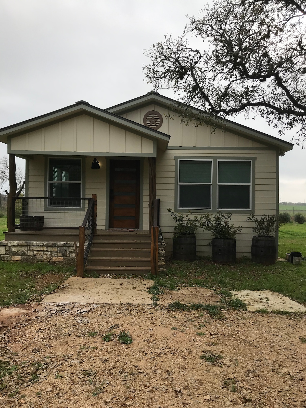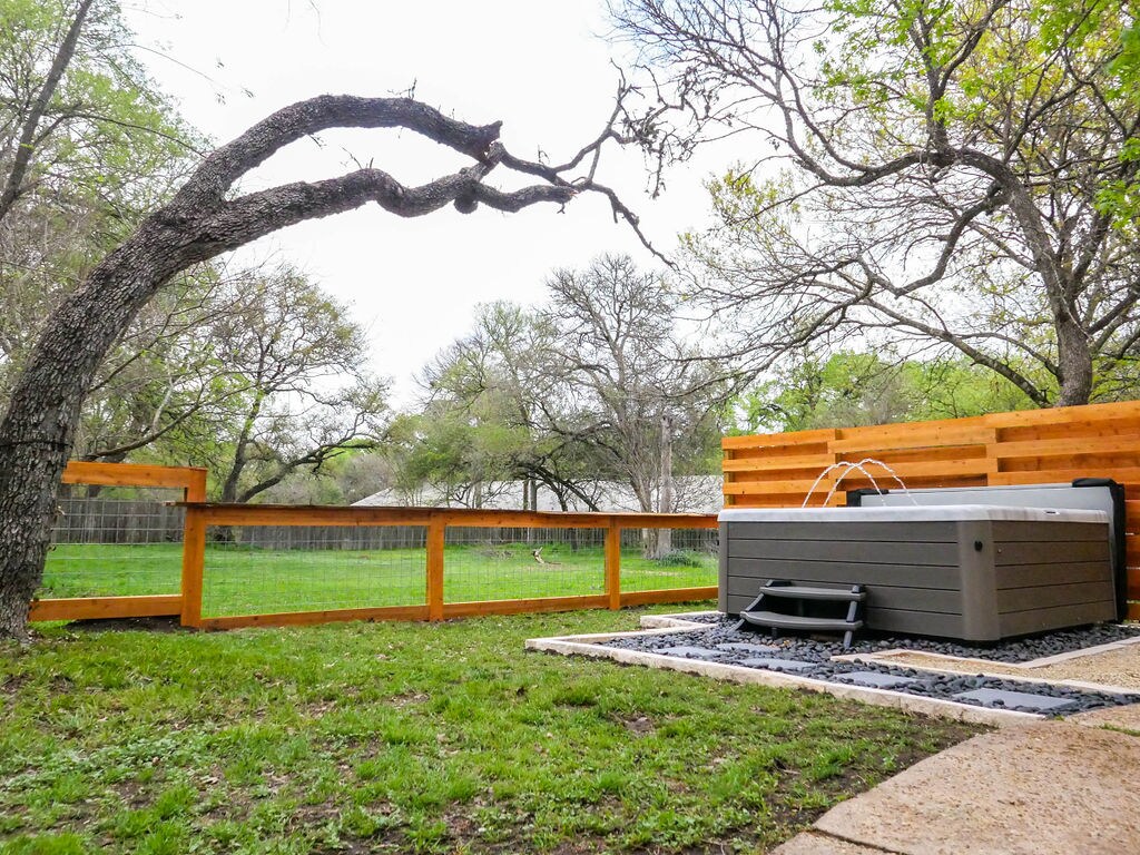 This artful rural retreat is a mix of quaint charm and modern elegance. Connect with a loved one or simply disconnect from the world. Watch the sunset or stargaze in complete privacy from the porch or hot tub that overlooks a meadow encircled with trees. Step inside to a flood of natural light. Cook a meal in the fully stocked kitchen. Get a great night's rest in the organic king-size bed. Explore nearby wineries, breweries, and hiking trails. Austin is a short drive from here too!