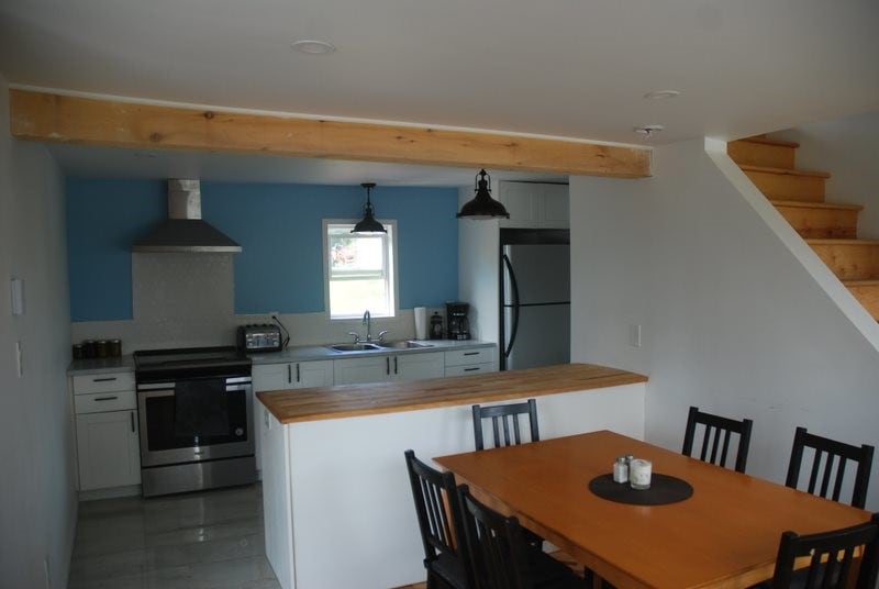 FlowEdge Riverside Getaway is een magische plek waar de natuur luxe ontmoet. FlowEdge ligt op 200 hectare grond en ligt op slechts 30 minuten afstand van de luchthaven en op 45 minuten afstand van Halifax. Kijk naar de sterren vanuit het comfort van een luxe kingsize bed, ontspan in je eigen houtgestookte bubbelbad, neem een verfrissende regendouche na een wandeling, bekijk het vuur terwijl je bij het erkerraam knuffelt en kook je geliefde een heerlijke maaltijd in onze volledig gevulde keuken. Dit is het uitje waar je naar verlangt.