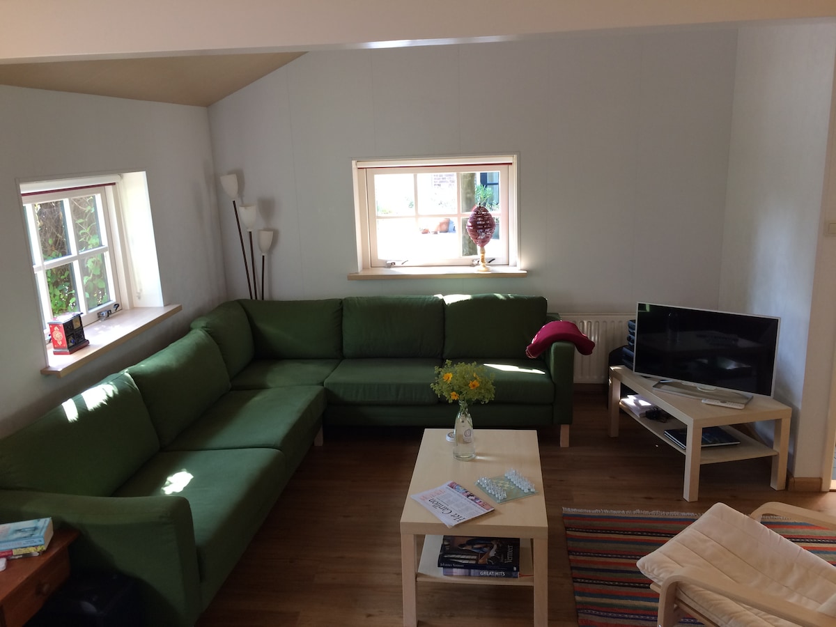 Ideale “thuiswerkplek”. Helemaal prive, ongestoord genieten in een landelijke omgeving. Rust en licht. Cottage stijl. Mogelijkheid voor baby. De zitbank kan als slaapbank gebruikt worden. Struinen in de natuur met uitgebreide wandelroutes. Grote grazers zien!! Fietshuur mogelijk met breng- en haalservice. Pontveren nabij. 's-Hertogenbosch op 10 en Amsterdam 70 km. Golfbaan Oijense Zij 8 km. Golfbaan Kerkdriel 9 km via pontje. Vers gerookte paling op vrijdag in Lith
