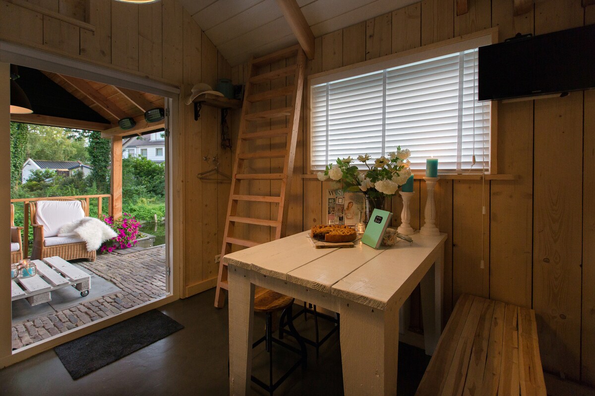 Charmant & Luxe Tiny House. Relaxen aan het water van het unieke natuurgebied het Rijk der Duizend Eilanden Slaap in een kingsize bed 180x220 met uitstekend matras. Wandelen, fietsen, strand, bos, suppen, varen, kajakken of mountainbiken. Het hoogste duin van Schoorl. Restaurants op loopafstand of genieten van haardvuur onder de veranda a/h water. Smart-tv, Netflix en WiFi Nespresso, thee en snoepjes Amsterdam, Alkmaar, Bergen aan zee, Schoorl, Egmond, Callantsoog Uitgeslapen groet, Ruby