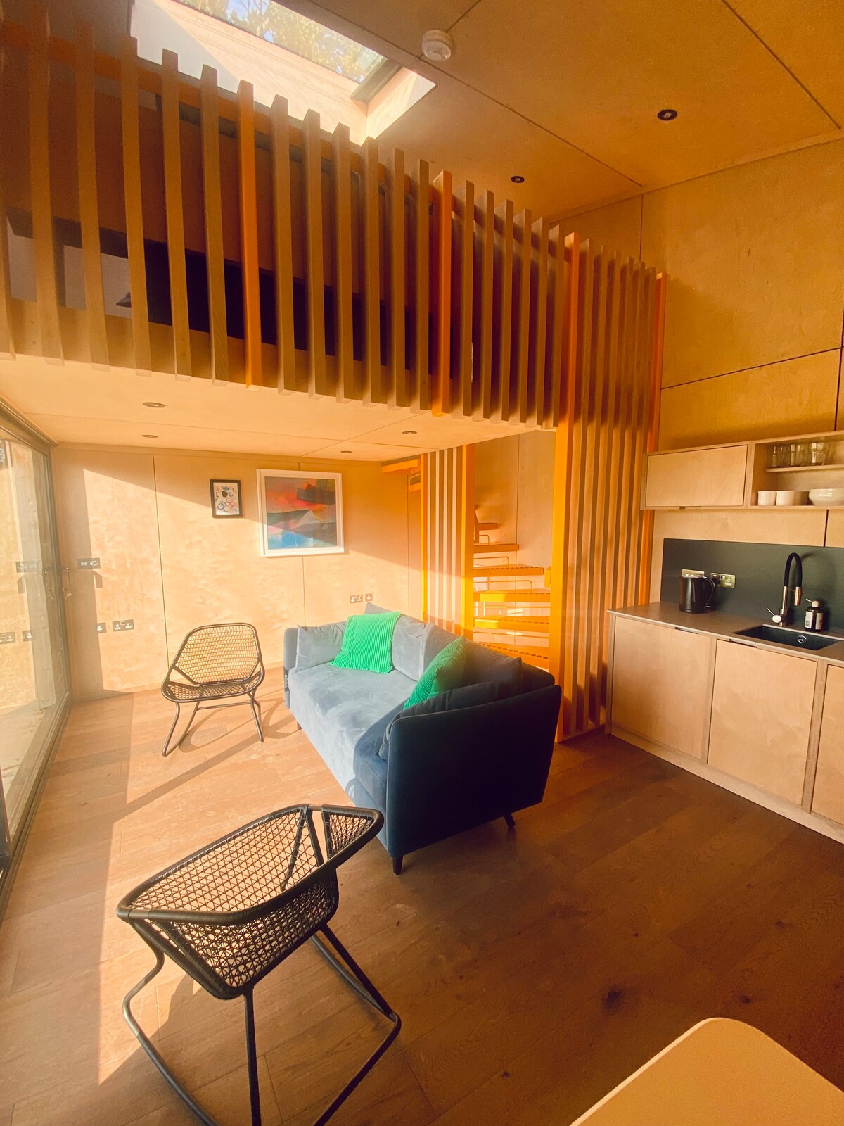 Grenzend aan het historische Heathfield Park, omgeven door bos en wilde dieren. Dit vrijstaande, zelfstandige bijgebouw op het terrein van onze woning. De ruimte is omgetoverd tot een gezellig toevluchtsoord in het bos, overspoeld met natuurlijk licht. Er is een beveiligde eigen entree en voldoende parkeergelegenheid op straat. De lounge heeft een houtkachel gevuld met houtblokken uit onze tuin. De accommodatie is ideaal voor een gezin van 4 of 2 koppels, de slaapkamer heeft een kingsize bed en er is een kingsize slaapbank in de lounge.
