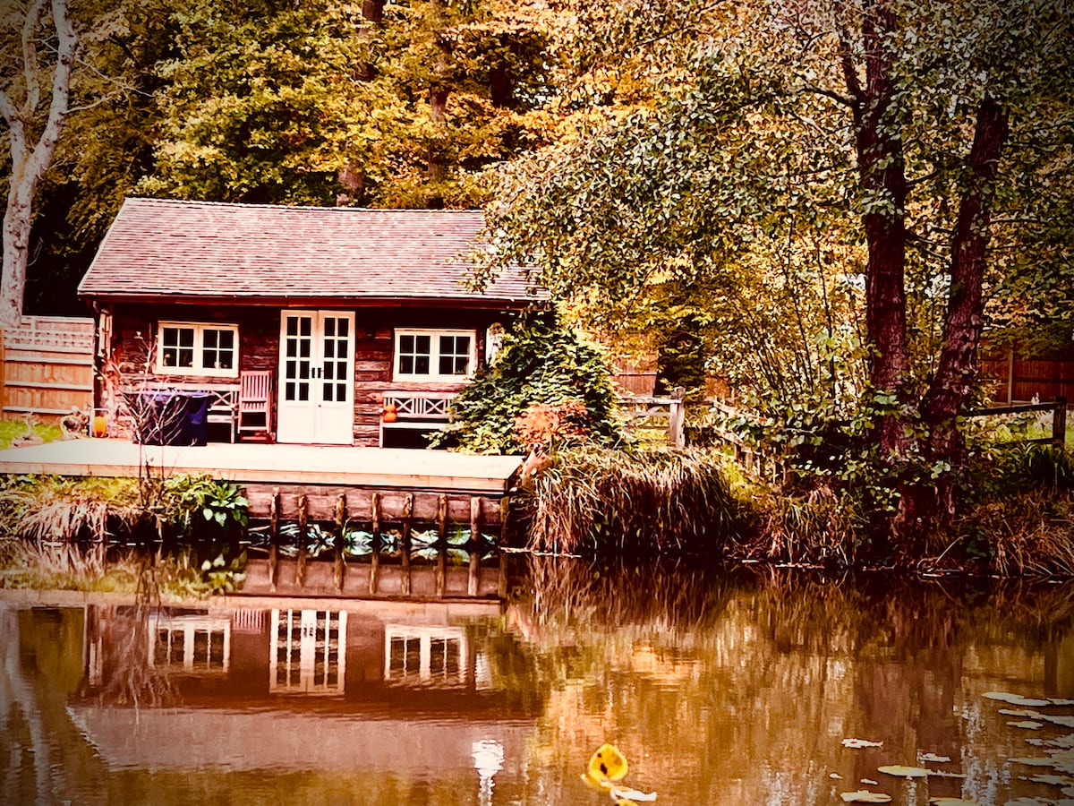 Ontspan en kom tot rust in het gezellige comfort van onze prachtige hut, een rustige schuilplaats naast een rustig meer en omgeven door oude bossen. In de zomer, gooi de deuren open en geniet van lange, gouden avonden op het grote eigen terras, perfect voor buiten dineren, 's ochtends koffie, of gewoon kijken naar onze inwonende ganzen. Als de herfst aanbreekt, verandert het bos in een tapijt van rijke kleuren, met vallende bladeren die op het meer worden weerspiegeld en frisse wandelingen voor de deur.