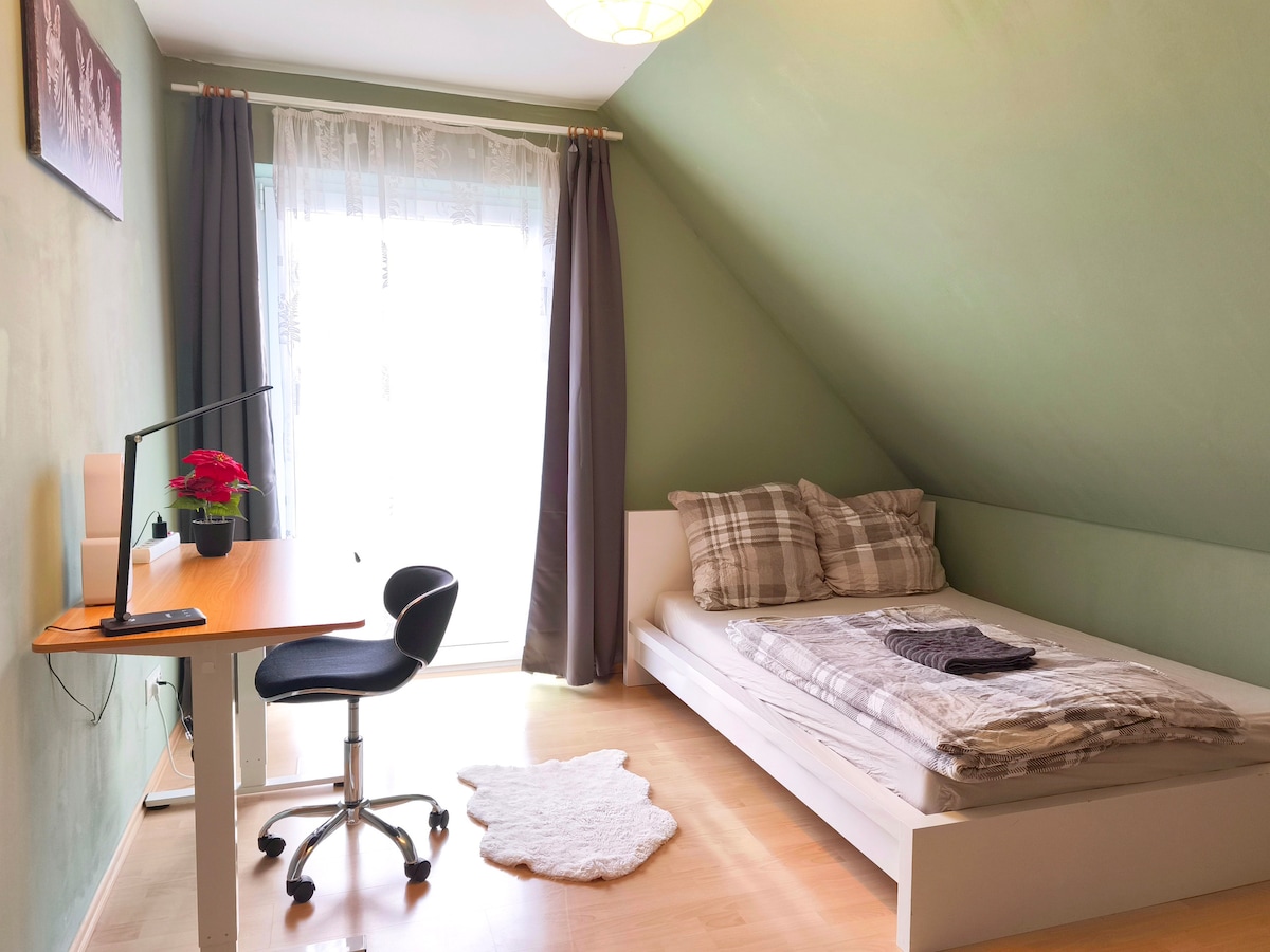Einfache Gästezimmer/ Monteurzimmer. Gute Verkehrsanbindung. Kein Hostel - Vermietung nur an 1 Vertragspartner. Ab 2 Nächten. Einkaufsmöglichkeiten in der Nähe. Öffentliche Verkehrsmittel in unmittelbarer Nähe. 2 PKW Stellplätze oder Platz für einen Transporter. Der Stellplatz ist Videoüberwacht. Der Backofen in der Küche ist defekt - die Mikrowelle fügt aber über eine Umluftfunktion! Internet vorhanden. kein TV - noch im Aufbau Für Kinder ist die Unterkunft nur bedingt geeignet.