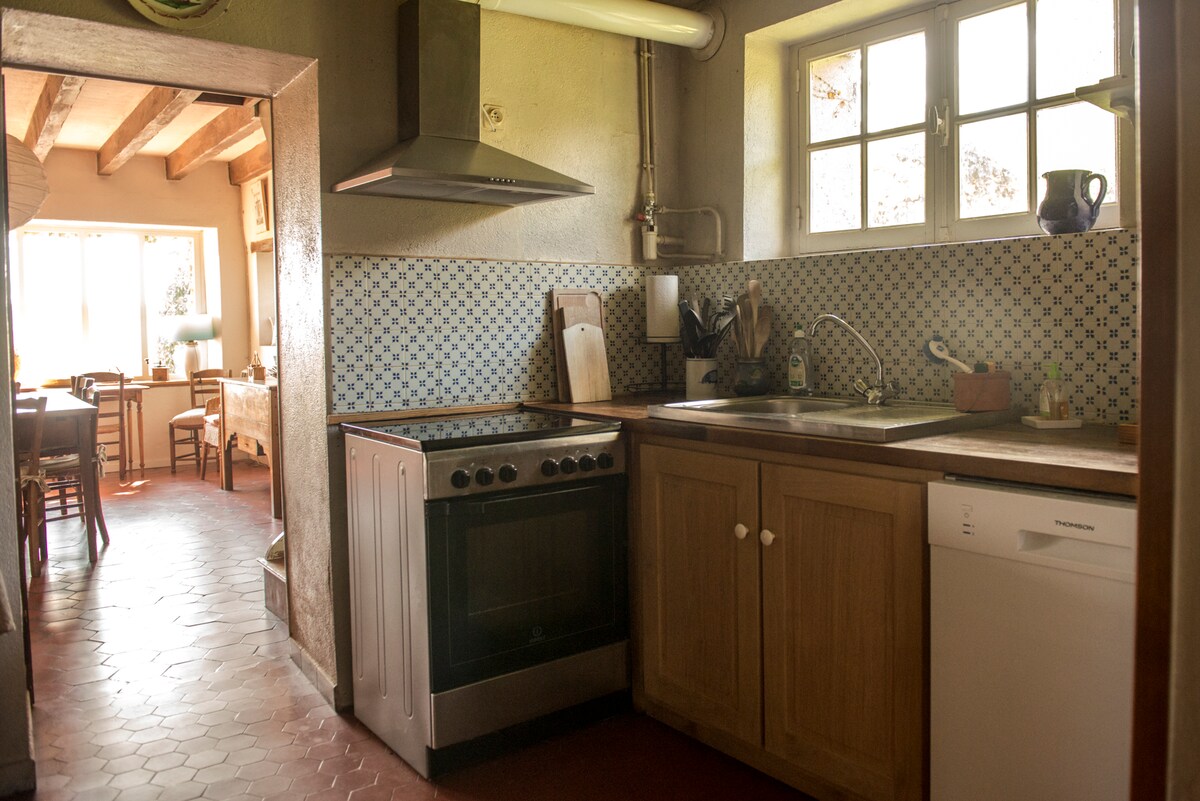ontspan in dit gezellige dorpshuis van 77 m2 volledig gerenoveerd, in de rust van de Bourbonnais bocage. Je verblijft op de binnenplaats van een geruïneerd middeleeuws kasteel en je kunt eten aan de voet van de toren. Gelegen op 10 minuten van de A71 en Montluçon. Op 15 minuten van de spa van Néris les Bains en op 30 minuten van het Forêt de Tronçais. Op 1 uur van de vulkanen en het regionale natuurpark Vichy (Unesco-erfgoed).