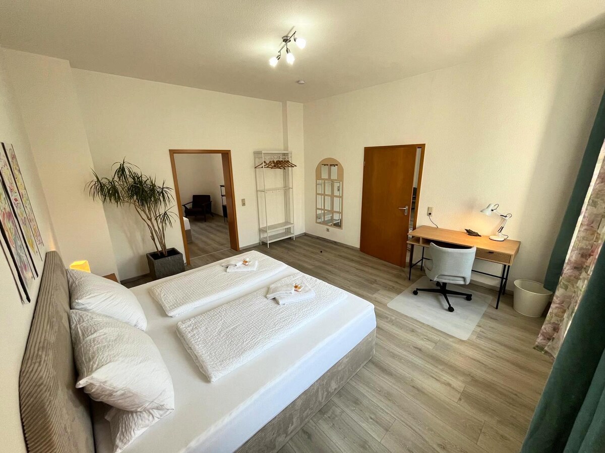 Sunshine Apartment* × 74 m ² appartement × 2 slaapkamers met elk een kingsize slaapkamer Grootte boxspringbed (200 x 200 cm) × slaapbank voor 2 personen ( ca. 150x180 cm) × volledig uitgeruste keuken - inductiekookplaat, Oven, broodrooster, waterkoker en nog veel meer. × beddengoed en handdoeken zijn inbegrepen × zeer aantrekkelijke badkamer met Douche × Inclusief zeep, shampoo en douchegel × gratis wifi in het hele appartement × 55 inch SmartTV × goede parkeerfaciliteiten in de buurt Ecologisch