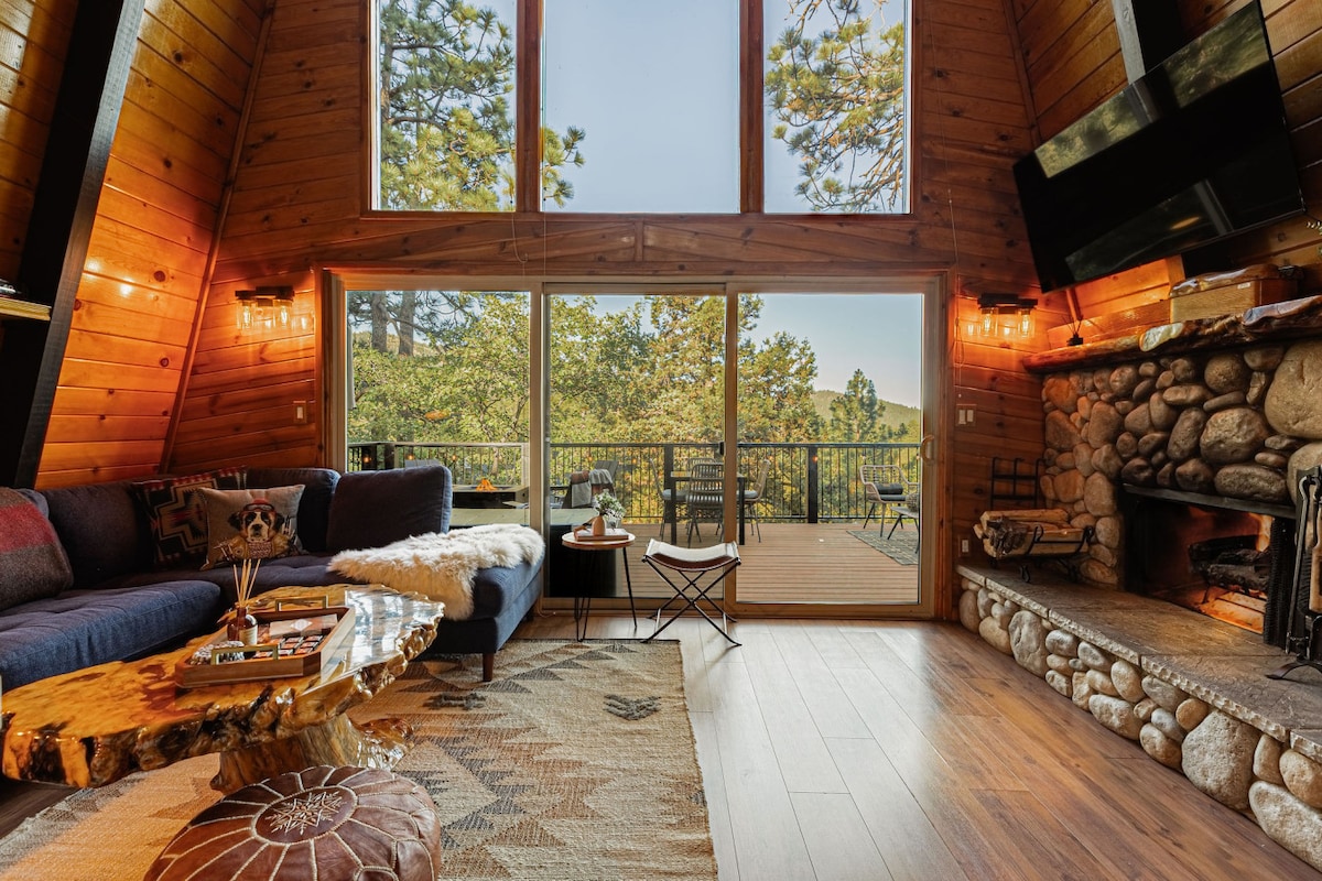 ✨ Locatie, Locatie, Locatie! Een bijzonder houten huisje met een adembenemend uitzicht op The Pinacles⛰️ Verscholen in een rustige straat in Lake Arrowhead. Dit serene toevluchtsoord heeft kamerhoge ramen, een gezellig interieur en een boslandschap dat uitnodigt om te ontspannen en op te laden. Op slechts enkele minuten van wandelpaden, winkels en de best beoordeelde restaurants, zul je genieten van de perfecte balans tussen natuur en gemak. Perfect voor stellen, gezinnen, groepen of soloreizigers die op zoek zijn naar een stijlvolle bergvakantie.