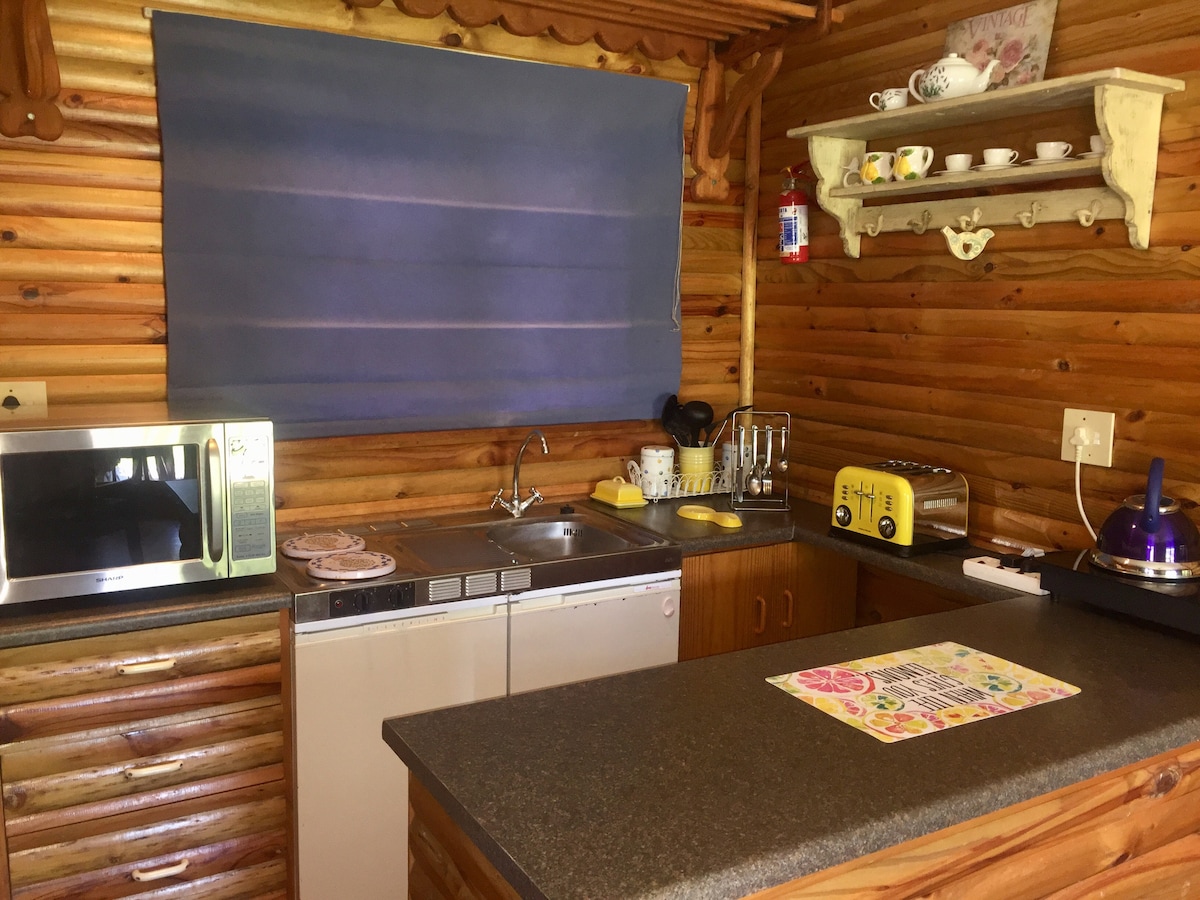 Deze off-grid unit heeft gas voor warm water en kookplaat, met een braai en open haard. Kaarsen en olielampen worden geleverd voor verlichting. Het heeft een tweepersoonsbed en een eenpersoonsbed in de slaapkamer en een eenpersoonsbed in de lounge. Koelkast beschikbaar in het educatief centrum.
