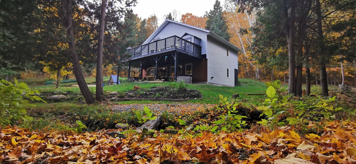 Omarm de rust van het bos en de charme van een A-woning. Schakel de buitenwereld uit en geniet van de schoonheid die elk seizoen te bieden heeft in deze gezellige hut. Breng je dagen door met het verkennen van paden die kronkelen door 50 hectare privébos en je nachten gezellig rond een buitenvuur. Dicht bij lokale winkels en restaurants in Haliburton Village (10 minuten rijden). Ideaal voor een toevluchtsoord met z 'n tweeën of een gezinsuitje. STR-24-00027