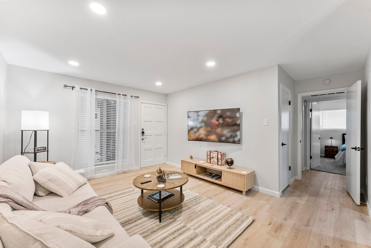 Welkom bij Sun and Oak, een toevluchtsoord badend in natuurlijk licht en gelegen in de charmante buurt Elmwood, op slechts enkele ogenblikken afstand van het levendige Bishop Arts District. Deze prachtige woning met twee slaapkamers biedt een rustig toevluchtsoord waar gasten kunnen ontspannen en opkrikken te midden van een prachtig ontworpen ruimte. OPMERKING: We bieden geen vroeg inchecken aan vanwege de tijd die ons schoonmaakteam nodig heeft om de unit voor te bereiden.
