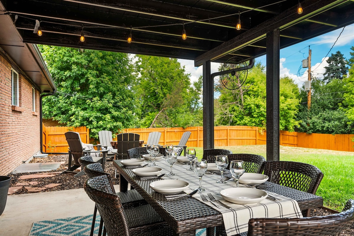 Welcome to Dream House Acres, one of Denver’s most desirable neighborhoods! This updated mid-century home sits on a quiet street near DeKoevend Park, the High Line Canal Trail, and Streets at Southglenn (2 mins), and is just 10 mins from Denver Tech Center, Park Meadows Mall, University of Denver, Inverness Business Park & Fiddler’s Green. With mountain views, a hot tub, fire pit, EV charger, an open floor plan, and all the comforts of home, it’s ideal for families, groups or business travelers.