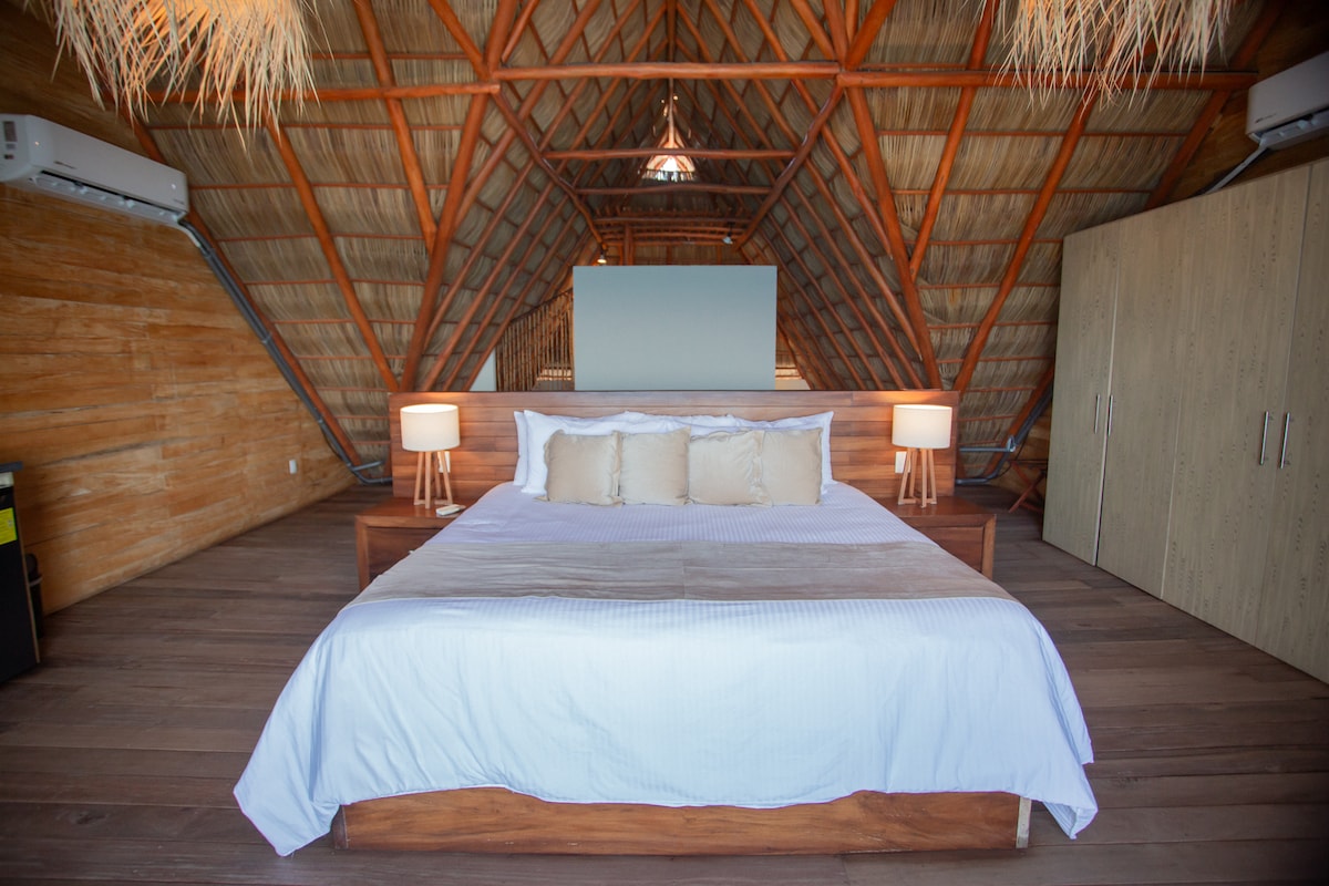 Uitzicht op de oceaan in een boomhutloft + infinity pool!