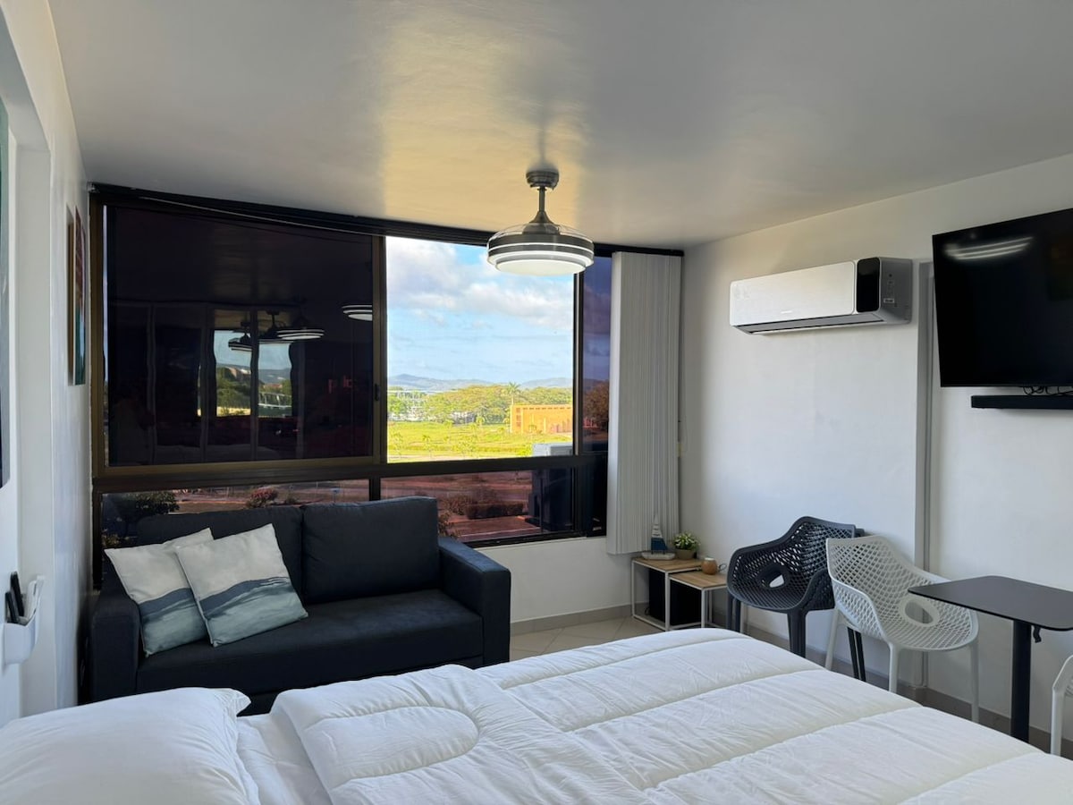 Acogedor estudio en lugar céntrico de Higuerote con aire acondicionado. Cocina equipada con lo necesario para tus preparaciones y asador de carbón. Sillas para playa, cava y otros. Cerca al pueblo y diferentes playas. Cuenta con piscinas , canchas de tenis y multiple de basket y futbolito. Vigilancia las 24 horas, estacionamiento frente al apartamento.