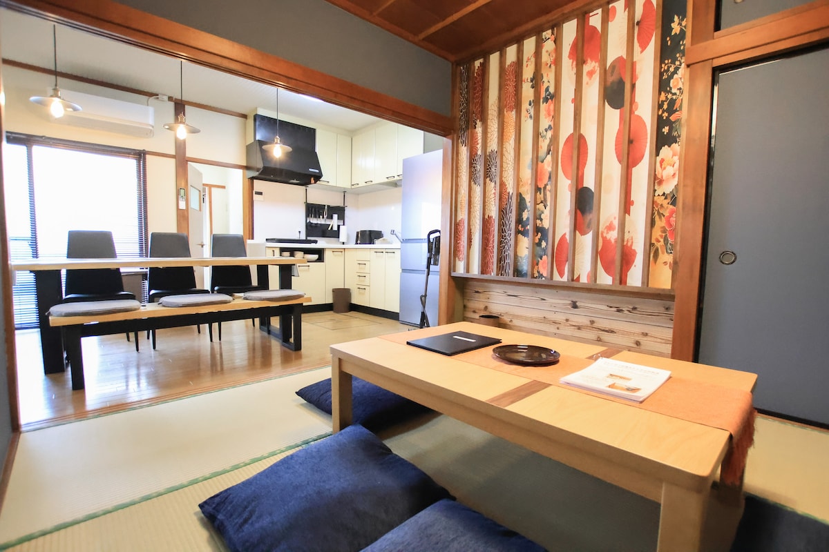 Beperkt tot één groep per dag.Ontspan in dit oude huis met een atrium. 30 seconden lopen naar de kust, 10 minuten lopen van Himi Station.Toeristische attracties en restaurants zijn ook op loopafstand, waardoor het perfect is voor een ontspannen wandeling. Parkeren is op 2 minuten lopen. ※ De parkeerplaats, die op 1 minuut lopen ligt, is momenteel in aanbouw. Het gehele huis wordt verhuurd.Zelfs met kleine kinderen en groepen kun je met een gerust hart verblijven zonder je zorgen te maken over de omgeving. De ruime keuken met een aanrecht is perfect voor het bereiden van vis die je hebt gevangen of het genieten van gerechten gemaakt met lokale ingrediënten. Faciliteiten zoals water, airconditioning en wifi zijn ook beschikbaar, dus voel je thuis en geniet van je verblijf. Toegang Himi Station 10 minuten lopen Himi Vismarkt Vismarkt Restaurant 8 minuten lopen Himi Bangaya 18 minuten te voet Hatari-kun Klokmuseum 3 minuten lopen Family Mart: 5 minuten lopen Voorzieningen Tandenborstels, kammen, haardrogers, badhanddoeken, gezichtshanddoeken