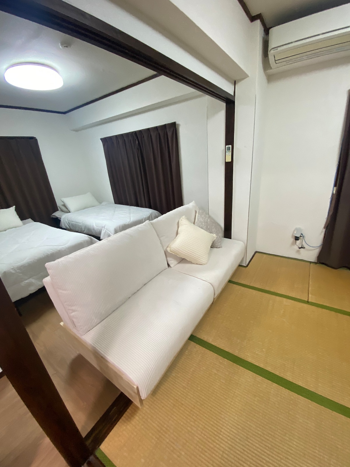 Dit is een geweldige locatie in het hart van Hiroshima, op slechts 7 minuten lopen van Peace Park. Het is de ideale plek om te ontspannen na een dagje sightseeing in Hiroshima. De ingang heeft een automatisch slot voor de veiligheid. Appartement ・met 2 slaapkamers Slaapkamer 2 -2 tweepersoonsbedden ・Een tweepersoonsslaapbank ・keuken ・toilet ・badkamer *Extra beddengoed voor slaapbank aanwezig. *Gebruik het extra beddengoed zelf. Tot 6 personen in totaal kunnen in de kamer verblijven.