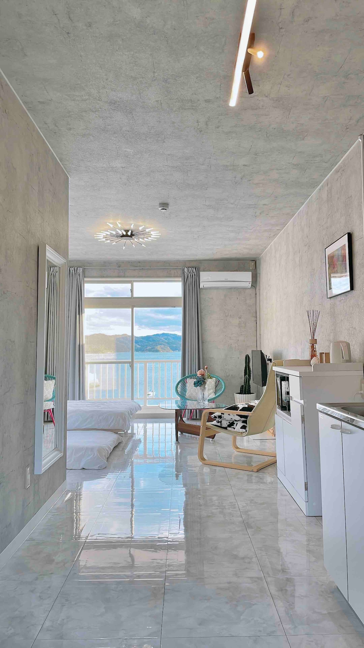 Appartement Hotel Marine Amakusa [Rookvrij] Een kamer met uitzicht op zee in een wit thema 204